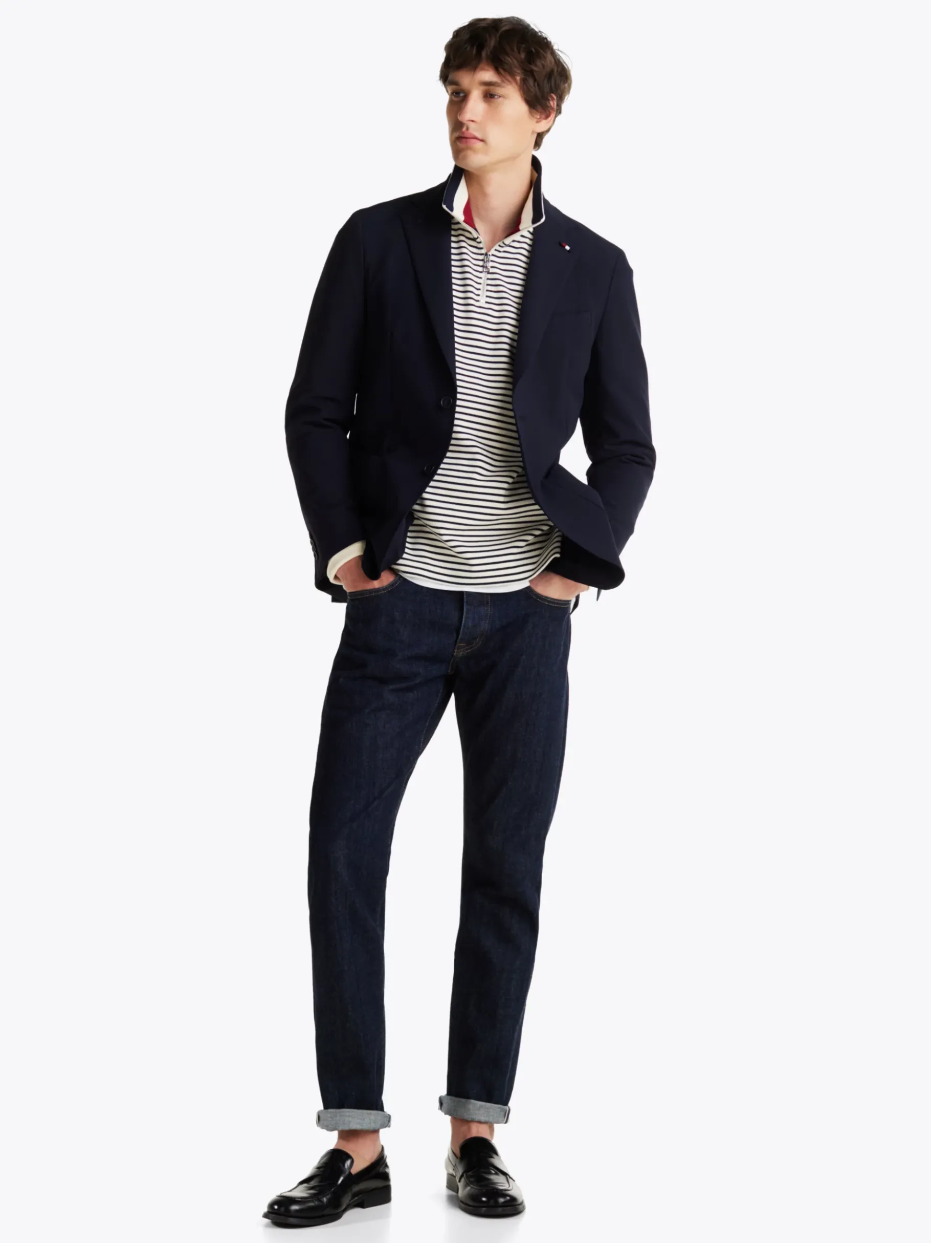 Bereite dich auf die Übergangszeit vor – mit diesem Allwetter-Sakko aus technischem Stoff in einem klassischen Schnitt.