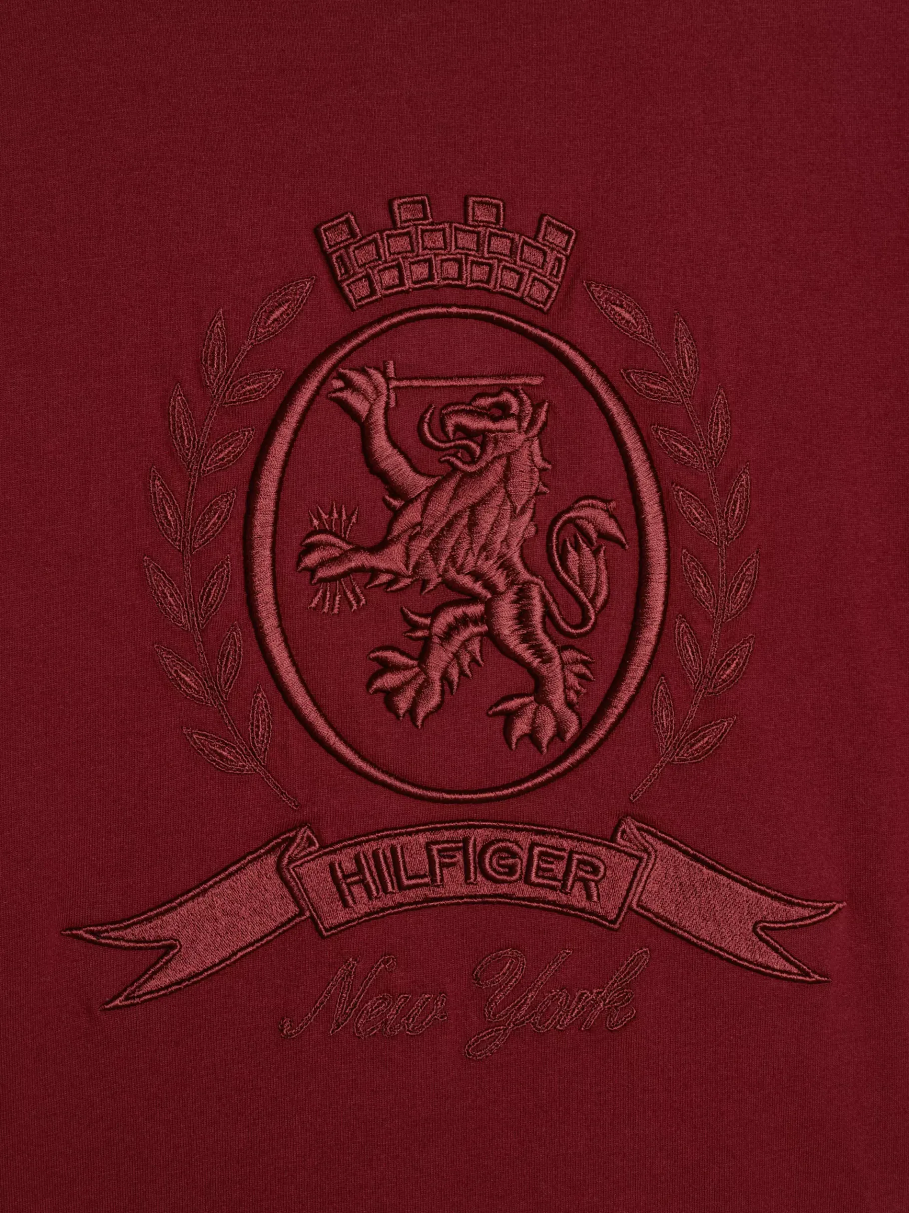 Bei diesem Boxy Fit T-Shirt verleiht die farblich abgestimmte Stickerei dem Oversize-Wappen auf der Brust einen dezenten Schimmer.