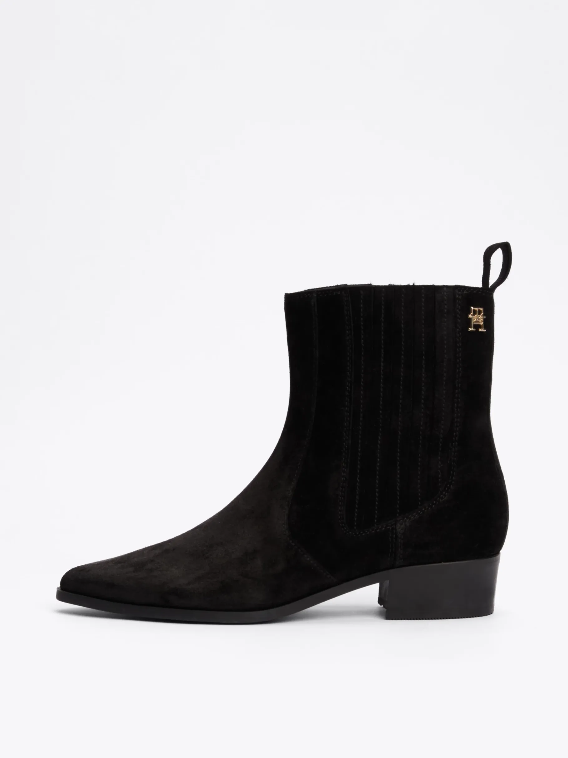 Naht-Details und niedriger Blockabsatz verleihen dieser Stiefelette mit seitlichen Stretch-Einsätzen im Chelsea-Boot-Stil Western-Vibes.