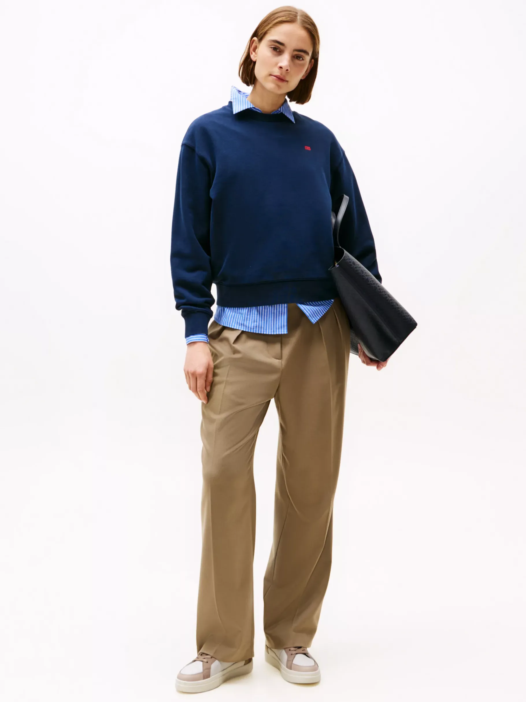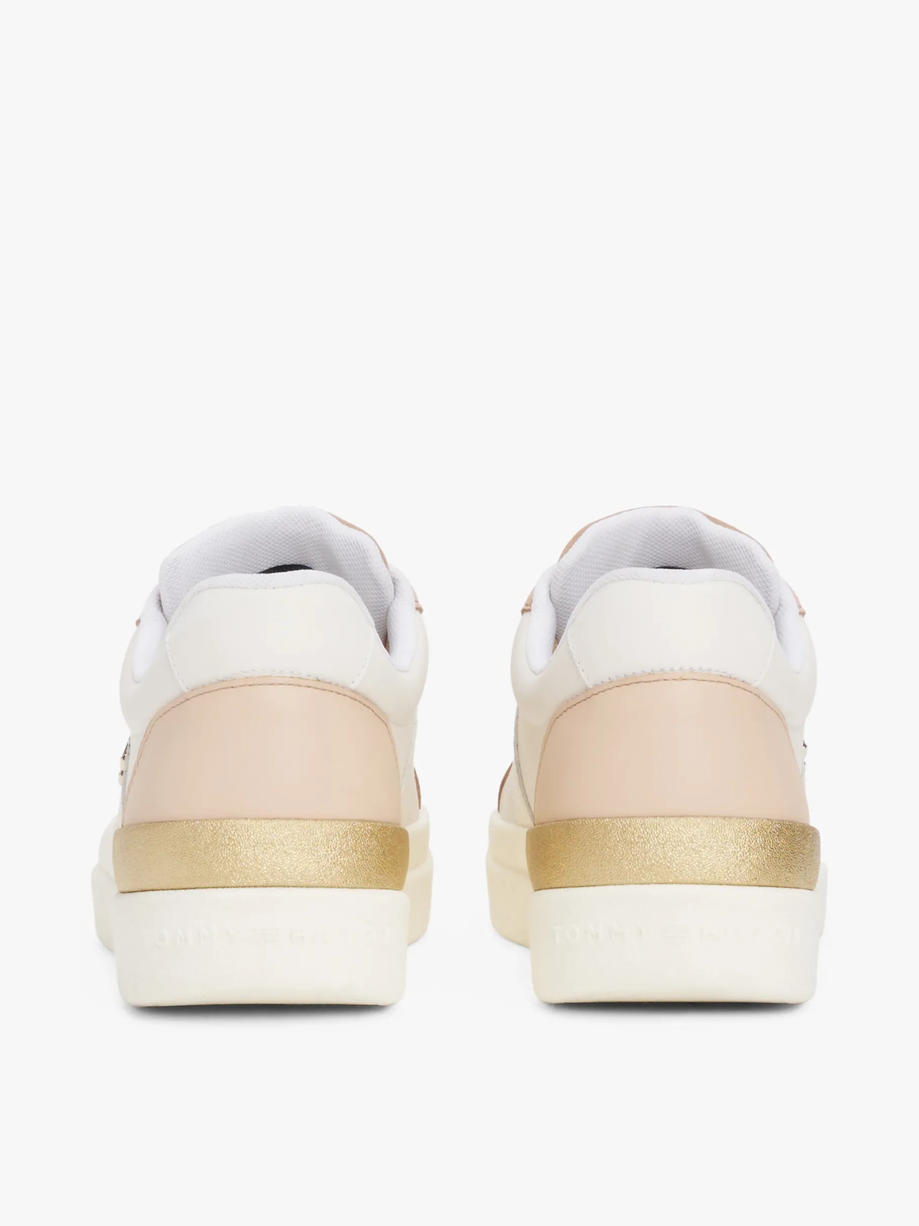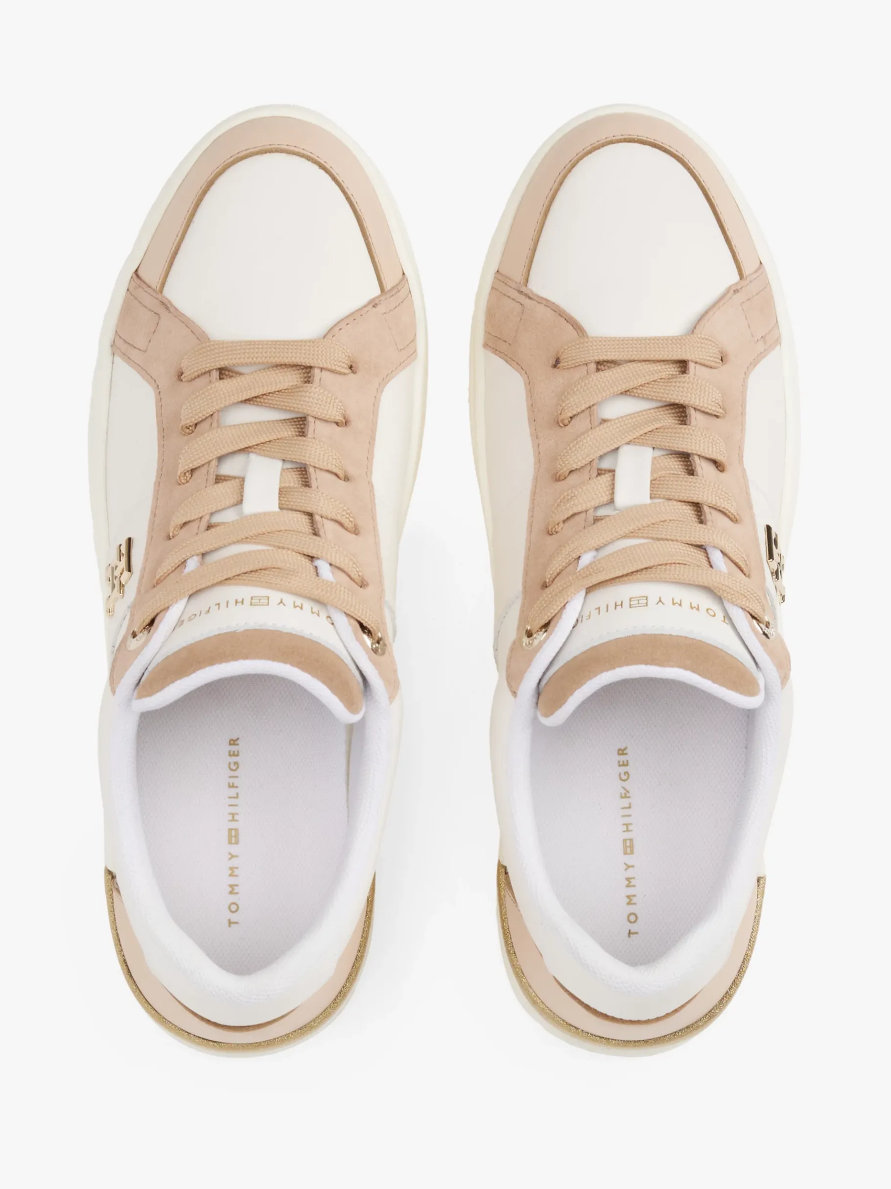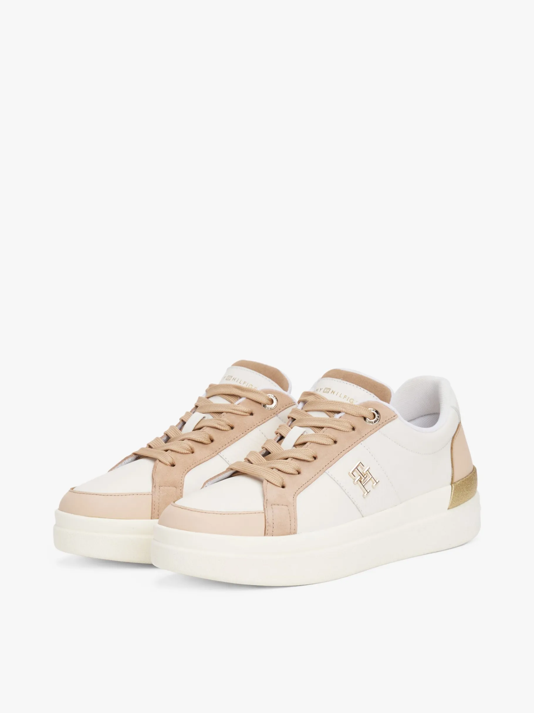 Dieser Court-Sneaker punktet mit Einsätzen aus Leder, poliertem TH-Monogramm-Emblem und Metallic-Details an der klobigen Sohle.