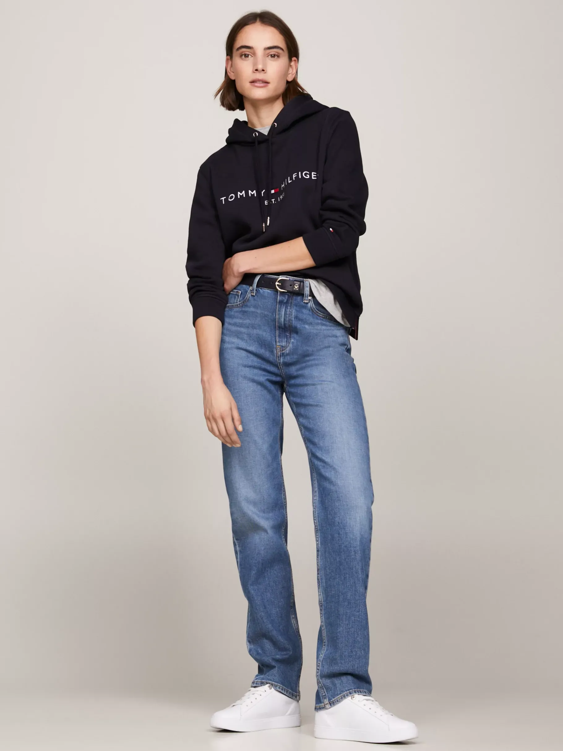 Meistere lässigen Style in diesem Hoodie aus Baumwollmix mit dem berühmten Tommy Hilfiger-Logo vorne.