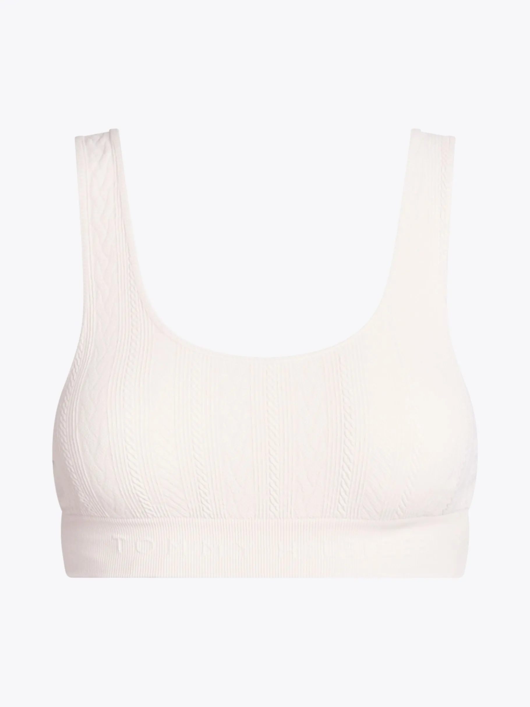Schlüpf an entspannten Tagen in dieses nahtlose Strick-Bralette mit dezent strukturiertem Perlfangmuster und farblich abgestimmtem Branding am Unterbrustband.
