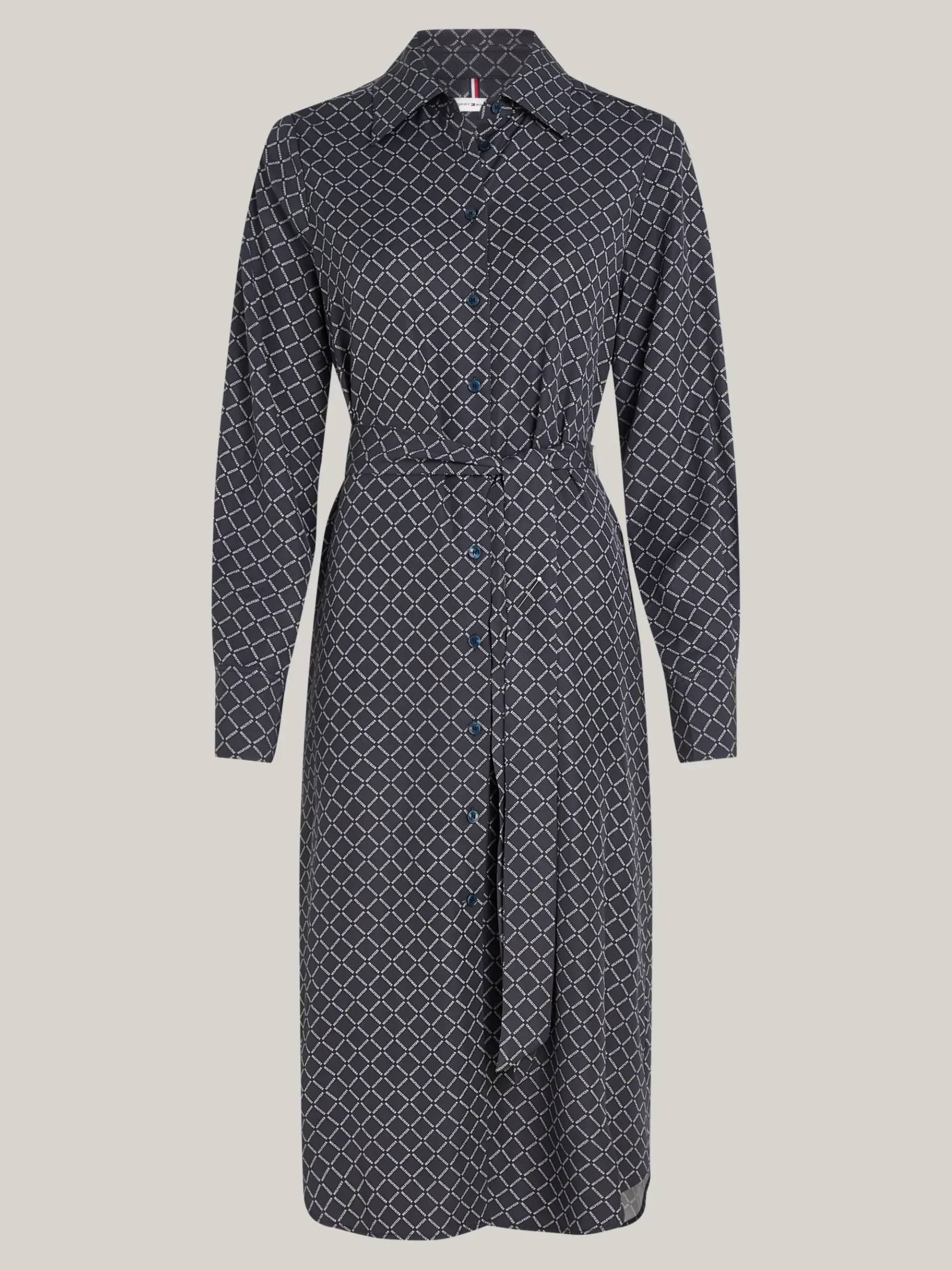 Das Rauten-Design mit dezenten Logos sorgt bei diesem vorteilhaften, femininen Hemdkleid mit Bindegürtel für einen aktuellen Branding-Look.