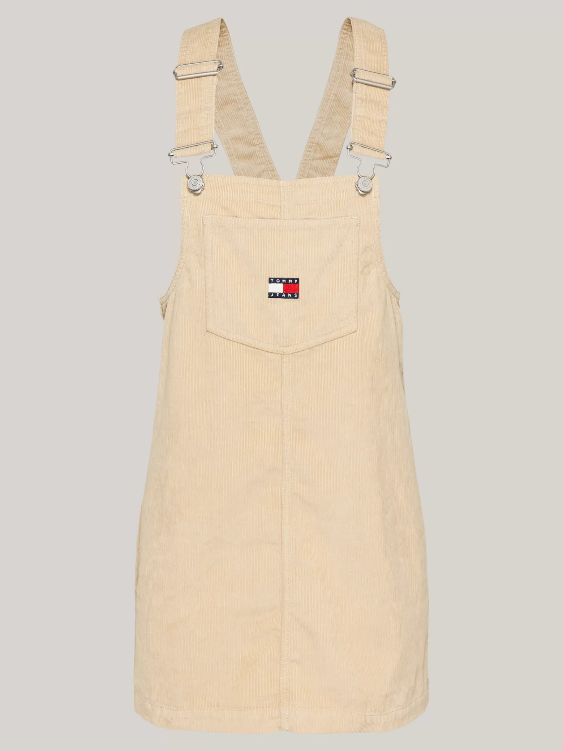 Kombiniere dieses Latz-Minikleid aus Cord mit verstellbaren Trägern und aufgesetzter Tasche vorne zu Lagen-Looks.