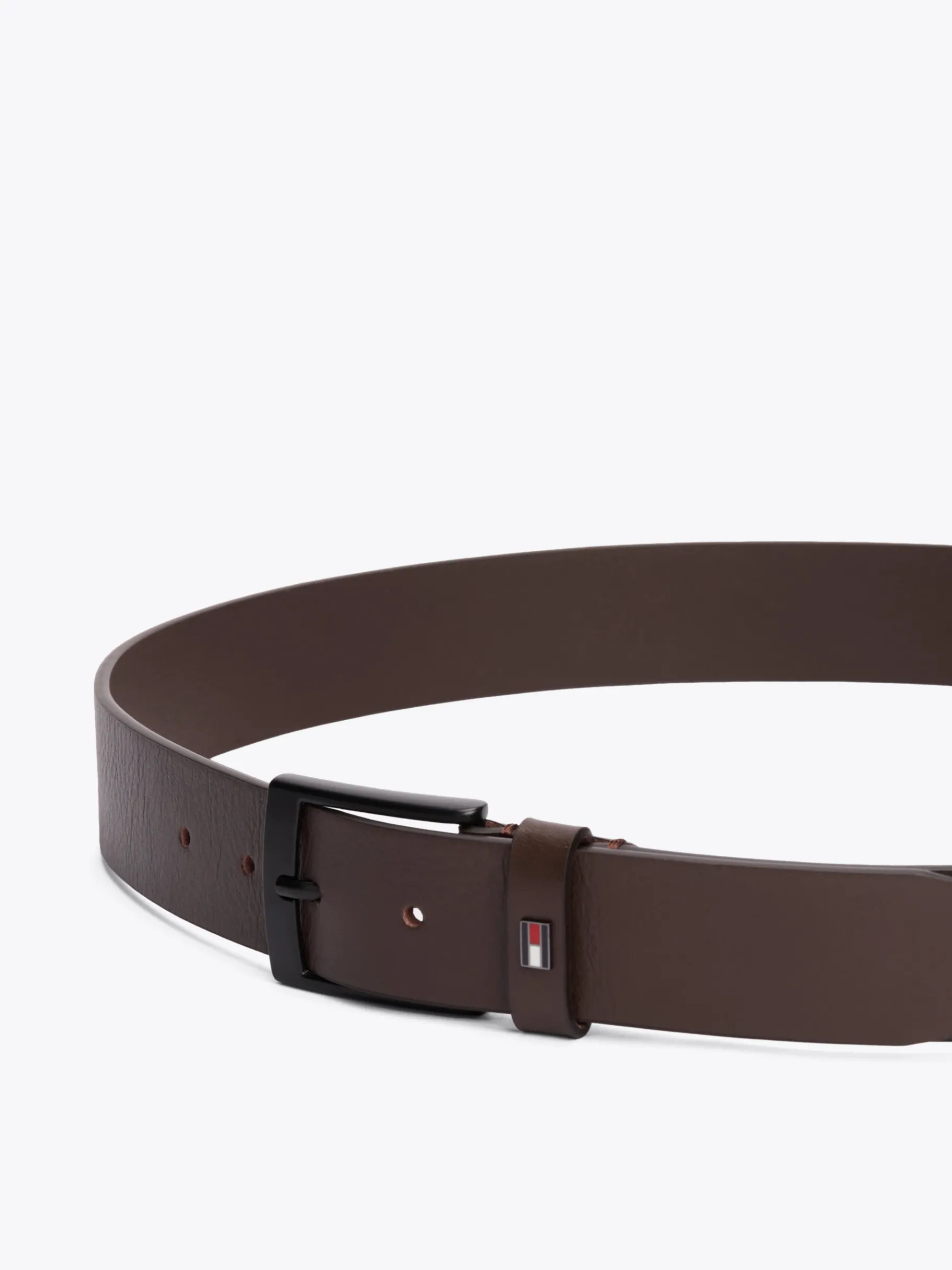 Dieser schlichte Gürtel aus strukturiertem Leder hat eine dezente Tommy Hilfiger Flag aus Emaille an der Gürtelschlaufe.
