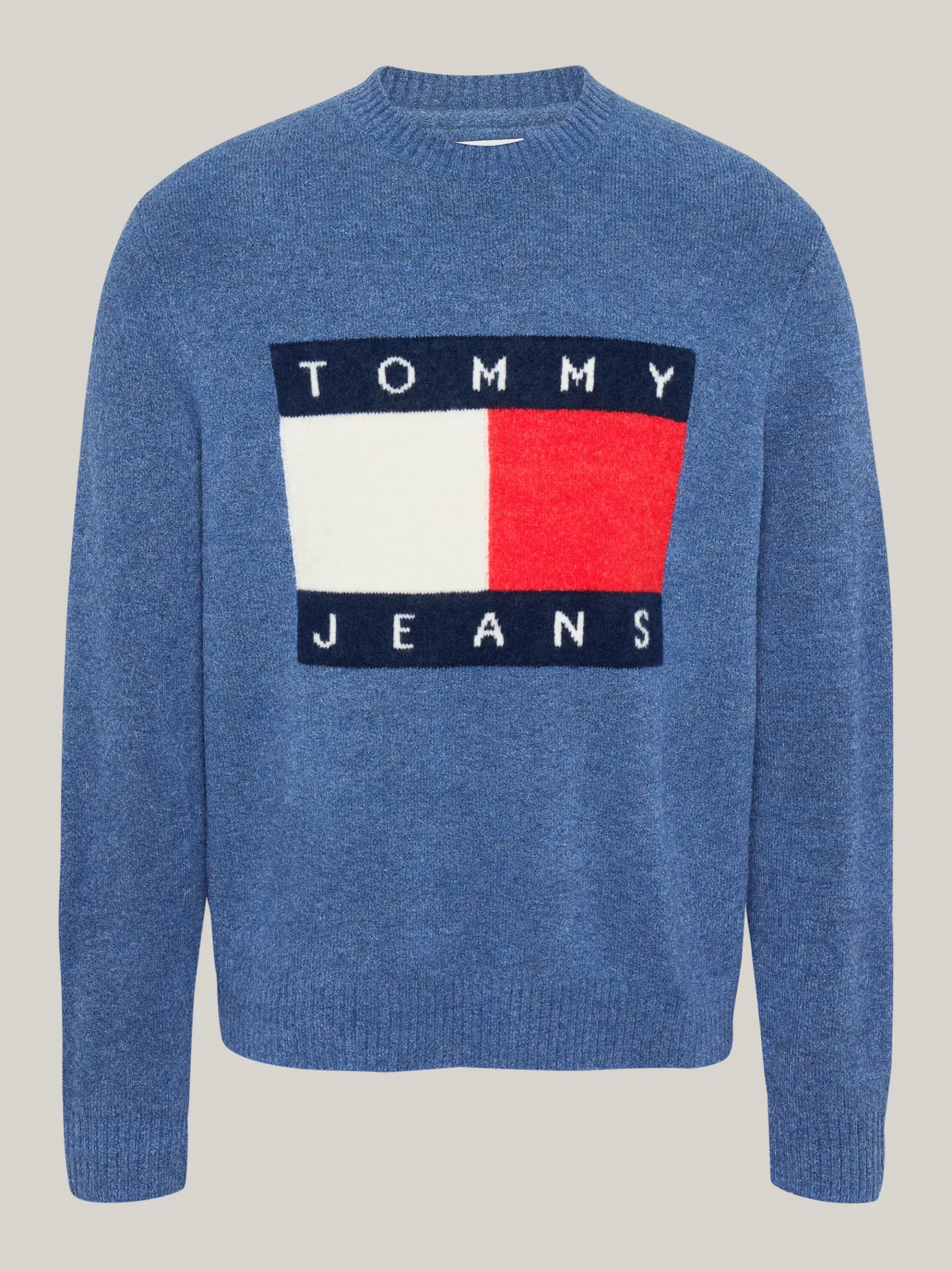 Greife zu diesem melierten Rundhals-Pullover mit Tommy Flag-Badge und verwandle dein Alltagsoutfit in einen stilsicheren Lagenlook.