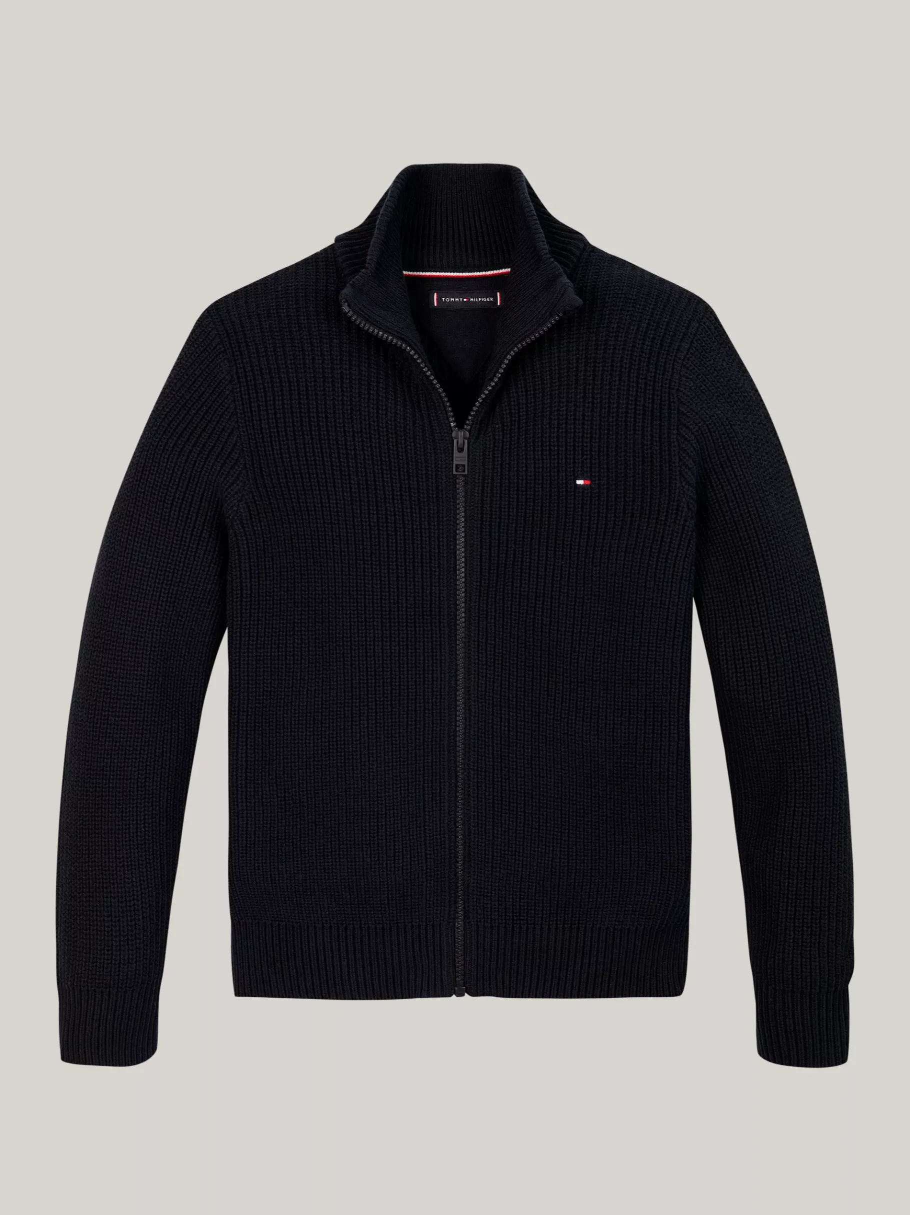 Diese zeitlose Pulloverjacke aus Rippstrick mit hohem Baumwollanteil punktet mit bequemem Reißverschluss und Branding-Details.