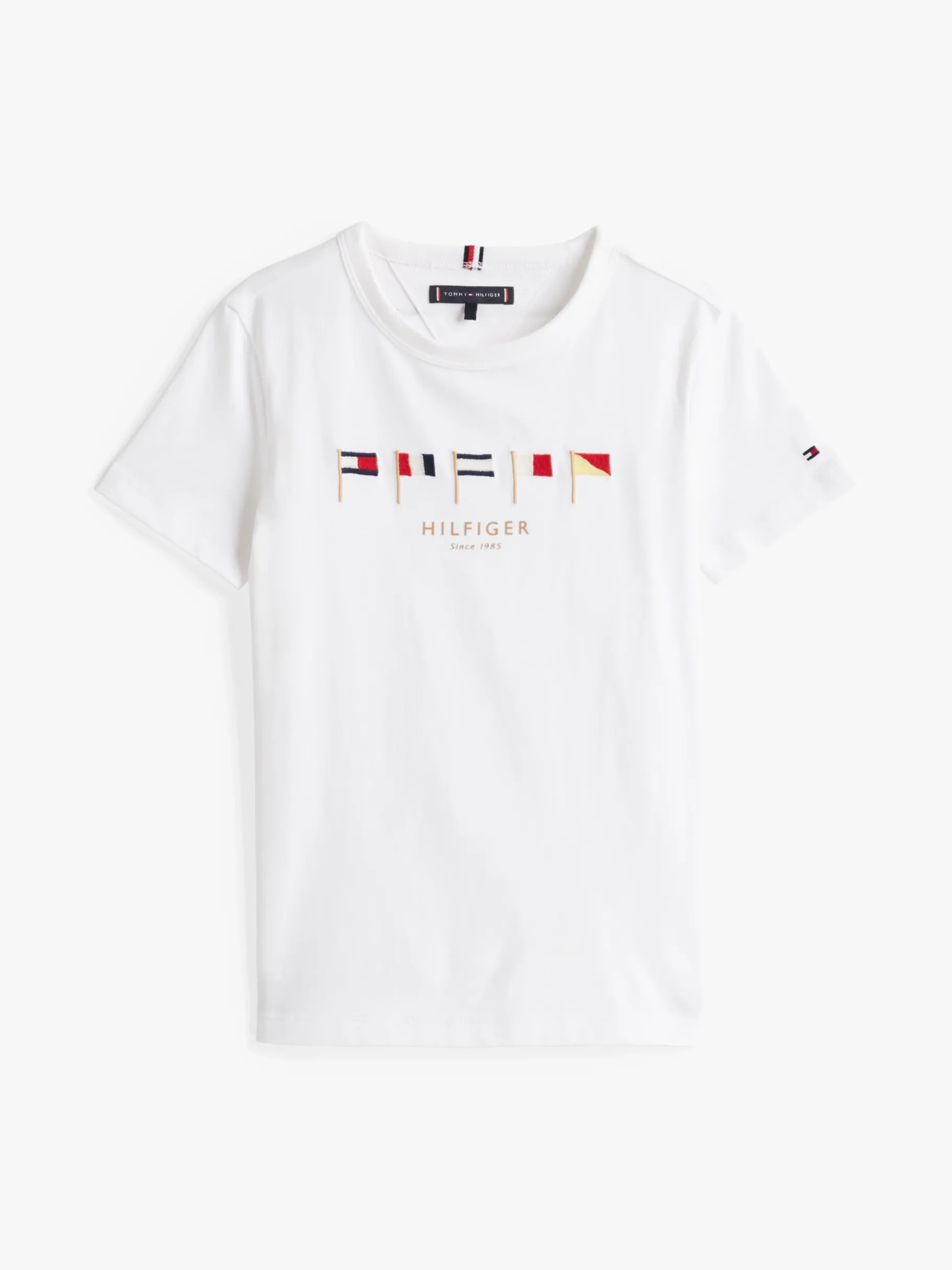 Dieses T-Shirt mit maritimem Motiv auf der Brust punktet mit typischen Tommy-Flaggen-Details.
