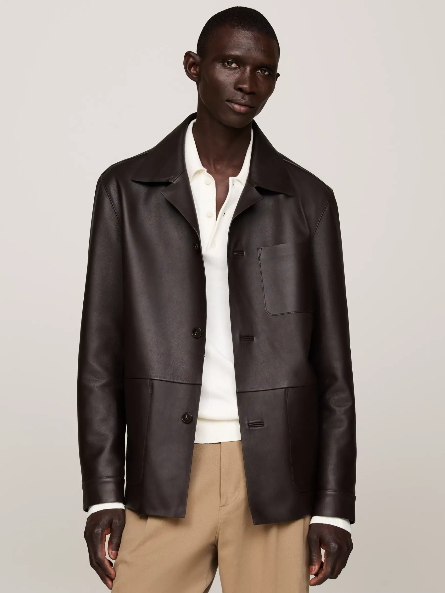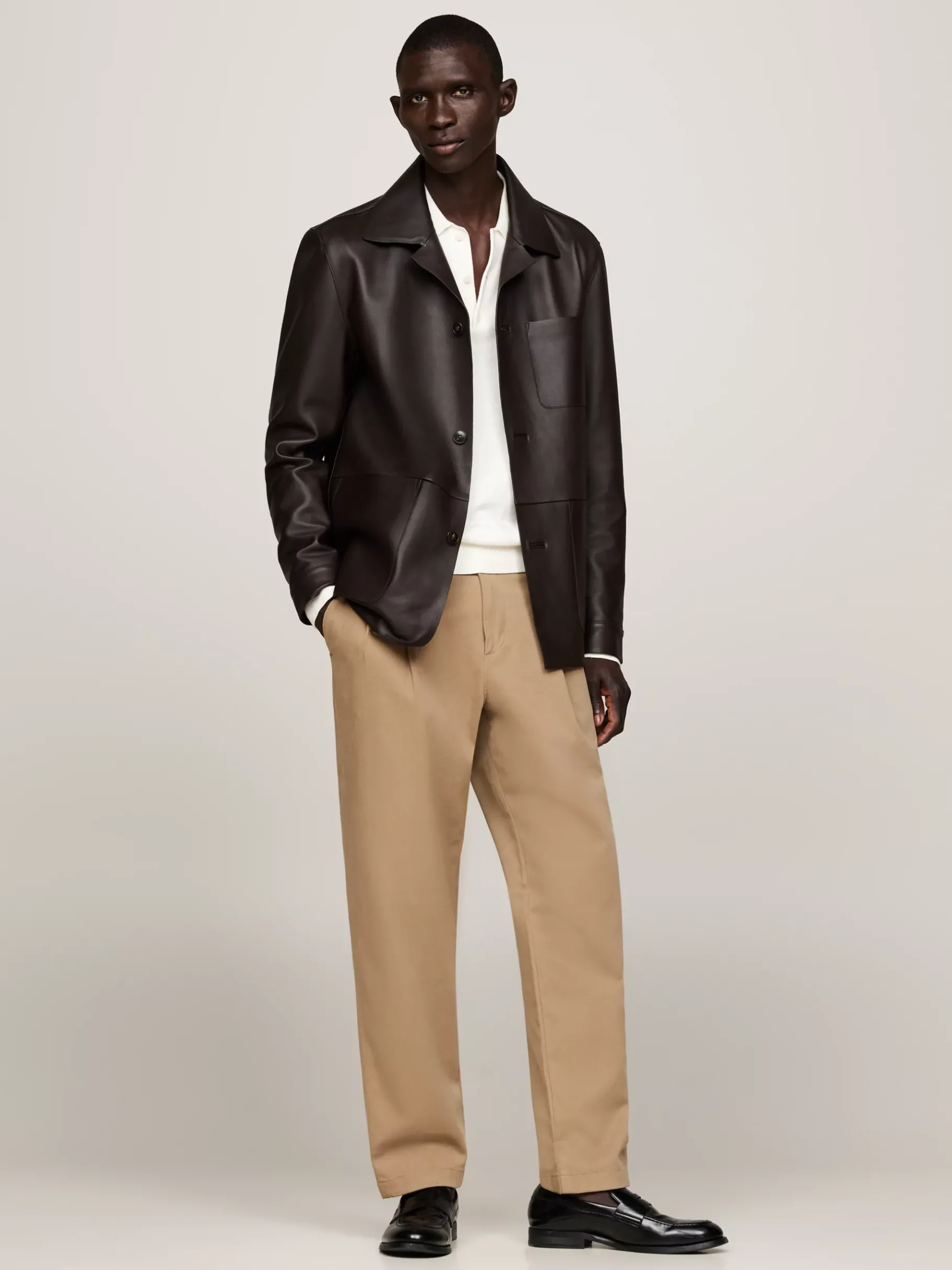 Eine Silhouette im Overshirt-Style sorgt bei dieser Jacke aus Nappaleder mit Knöpfen für smarte, aktuelle Vibes.