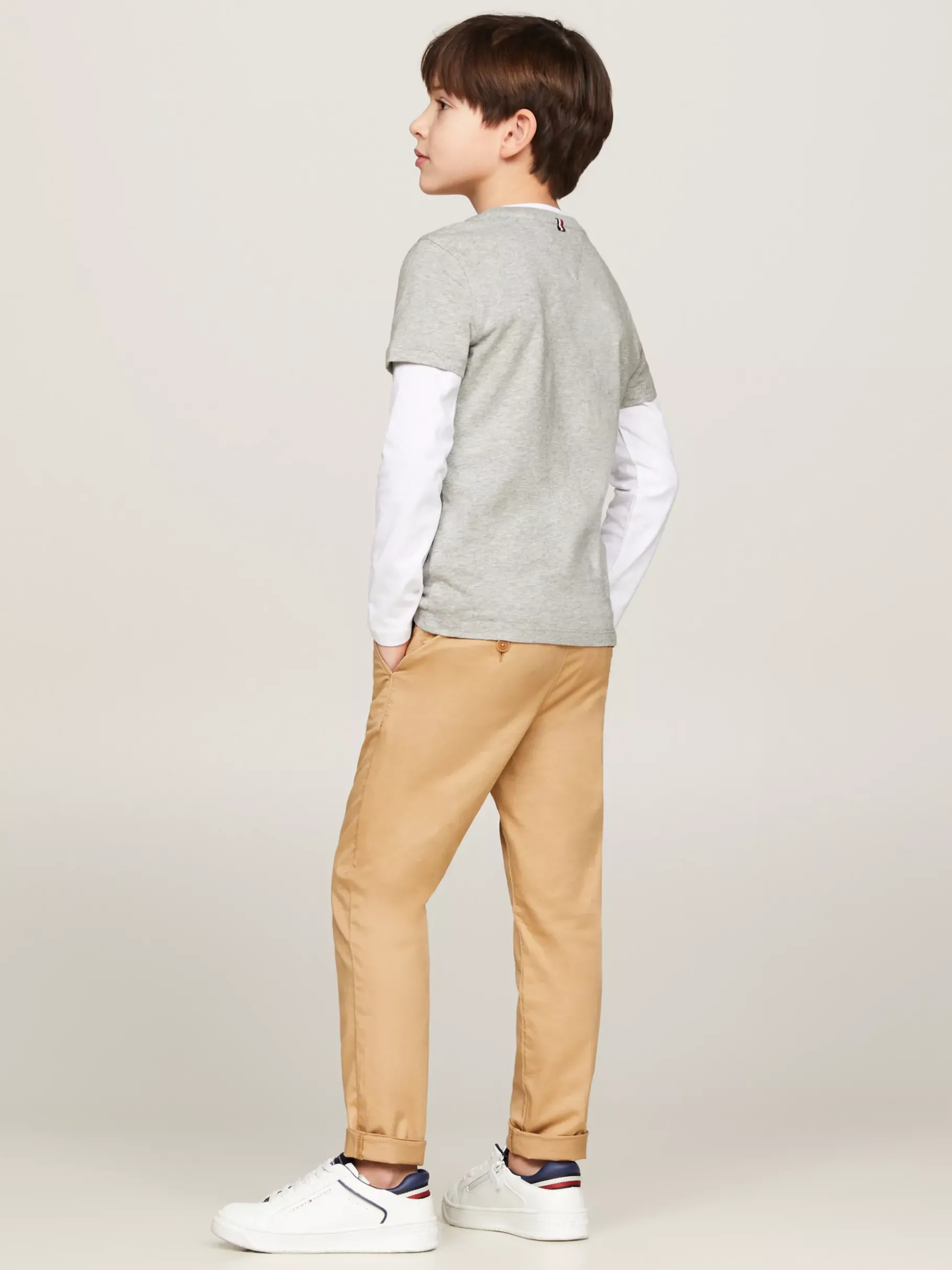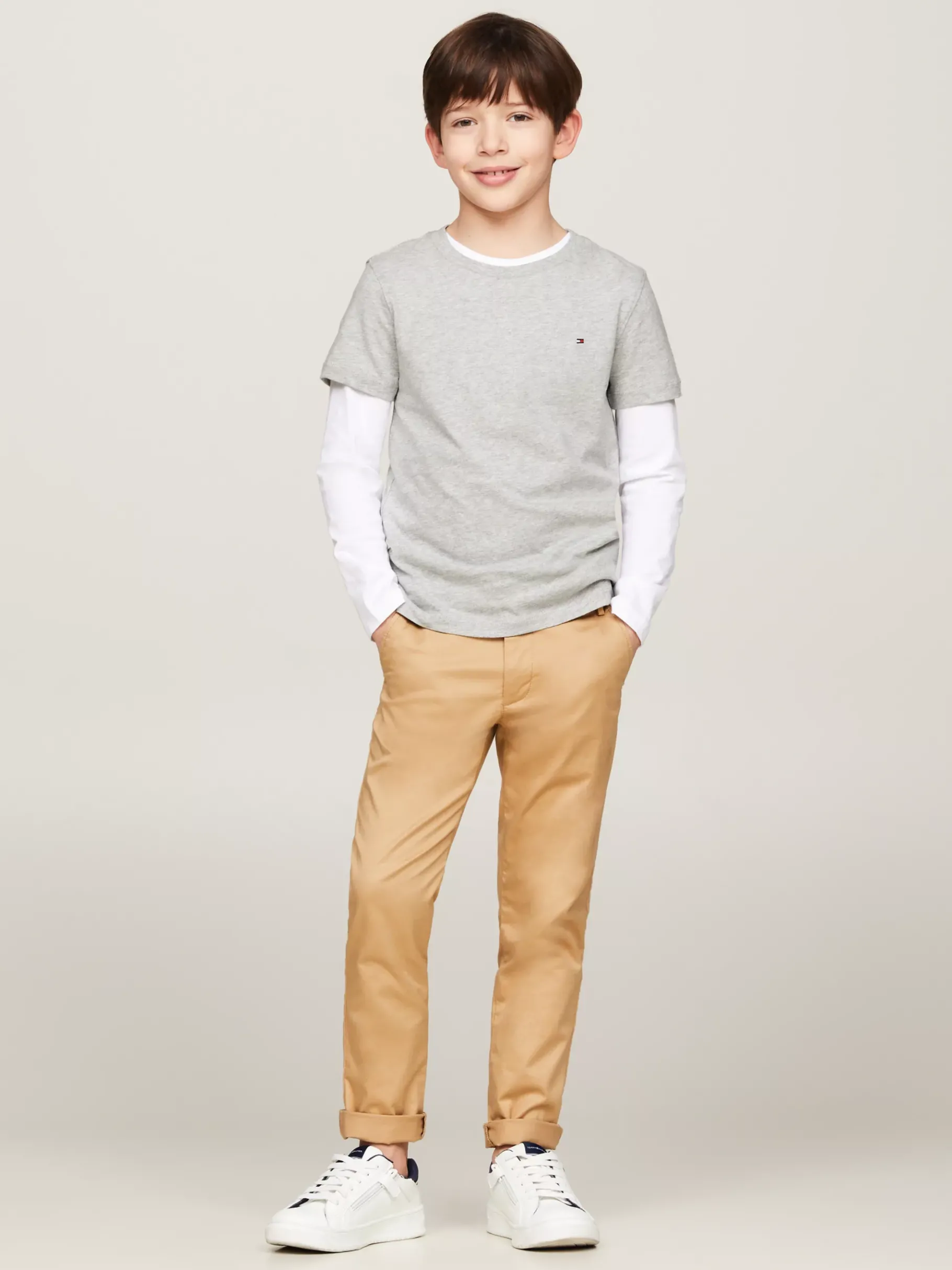 Ein T-Shirt gehört zu fast jedem Outfit und kann unter einem Hemd oder solo zur Jeans getragen werden. Dieses T-Shirt aus nachhaltiger und bequemer Bio-Baumwolle ist eine schicke Interpretation eines Alltags-Kleidungsstücks. Es hat einen Rundhalsausschnitt und auf der Brust eine dezente Tommy Hilfiger Flag.