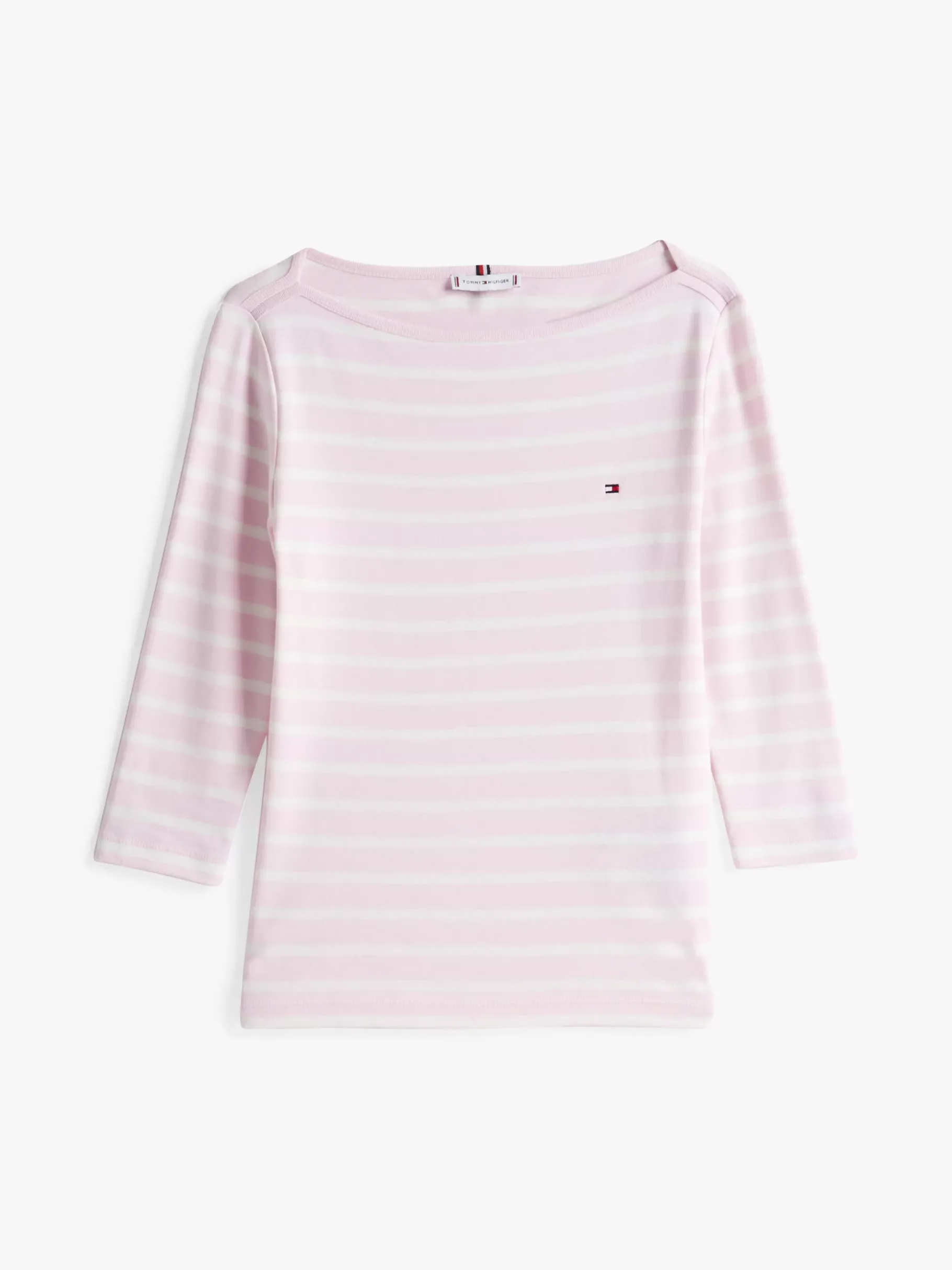 Tommy Hilfiger T-Shirt mit U-Boot-Ausschnitt und 3/4-Ärmeln LIGHT PINK/ ECRU STP New
