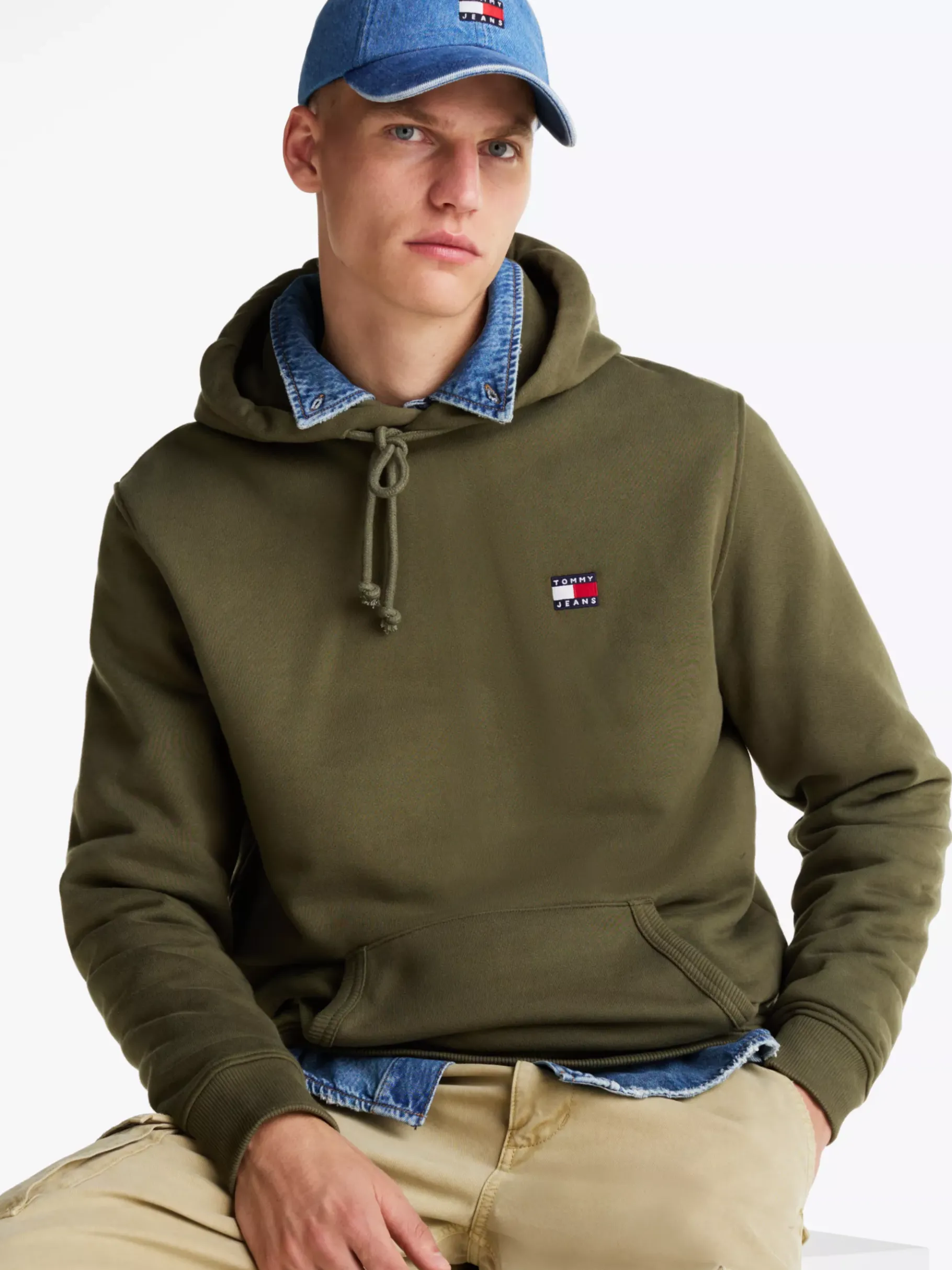 Ein Tommy-Badge auf der Brust verleiht diesem Hoodie klassische Tommy-Vibes, während die Hände in der praktischen Kängurutasche warm bleiben.