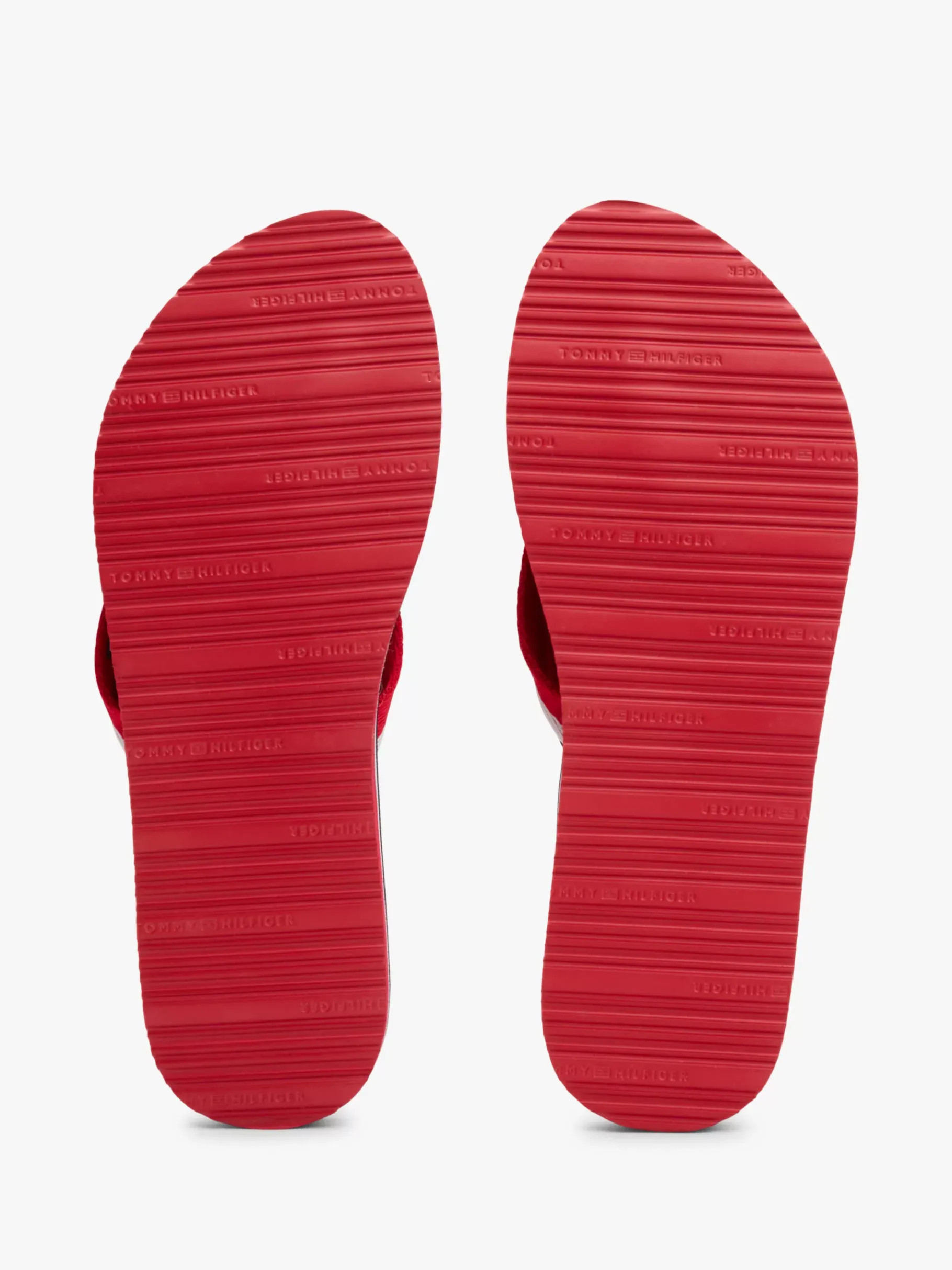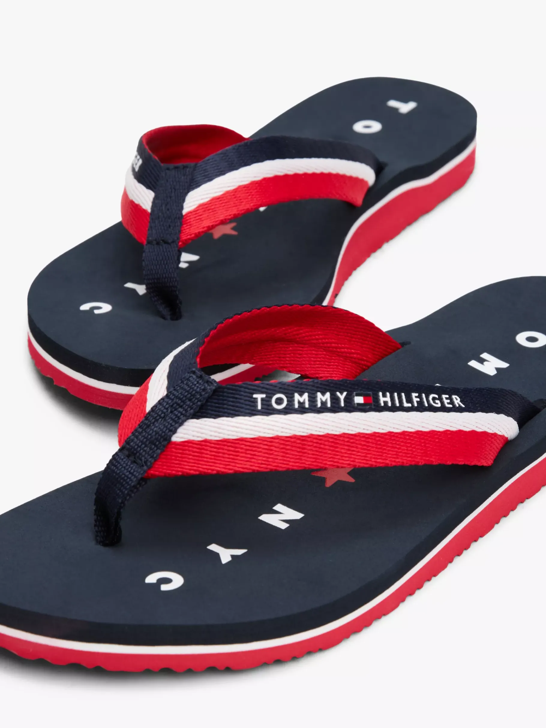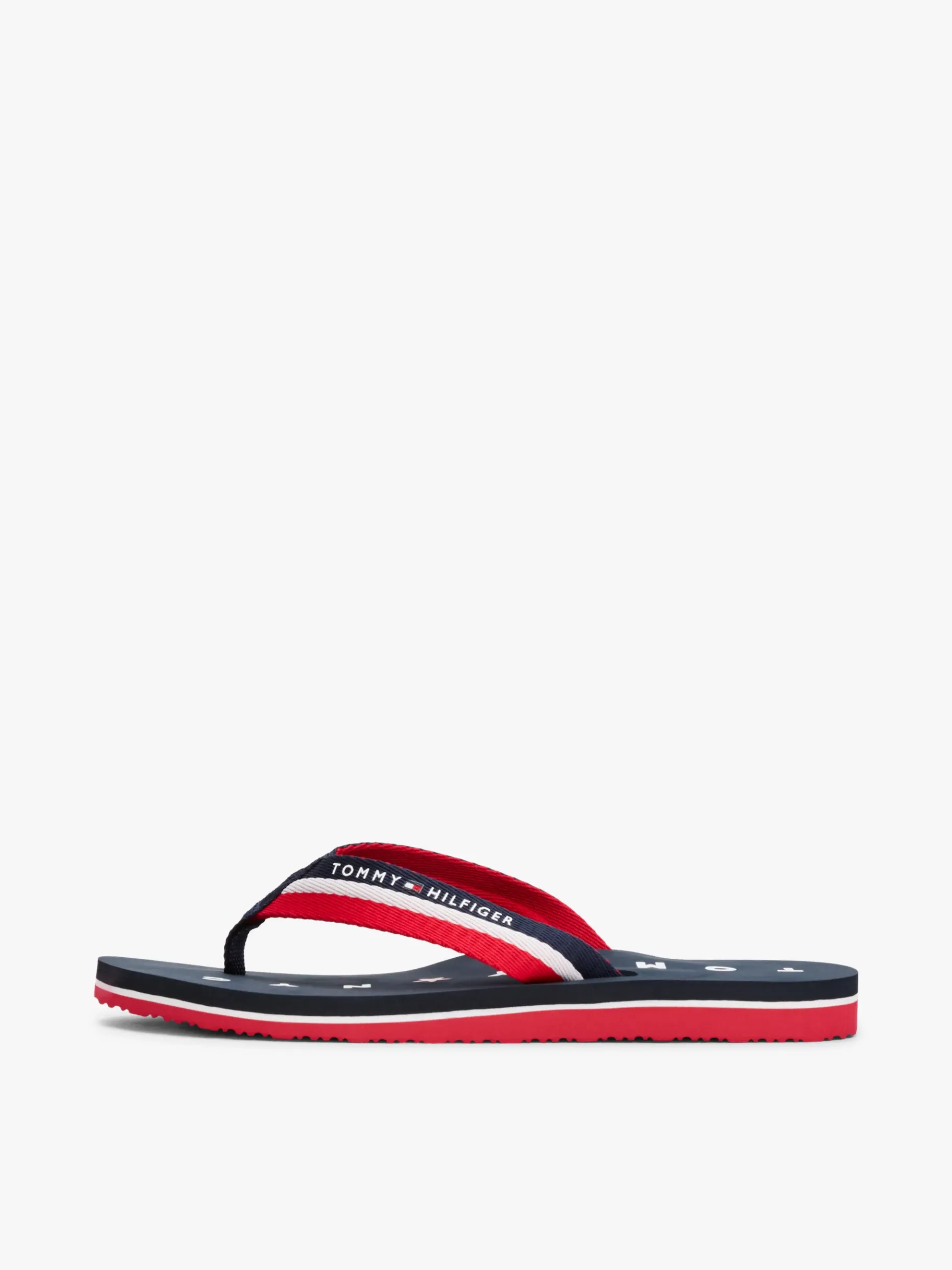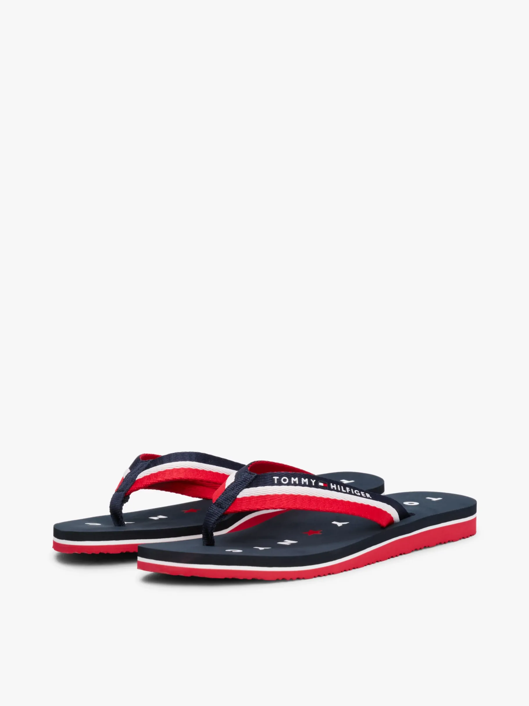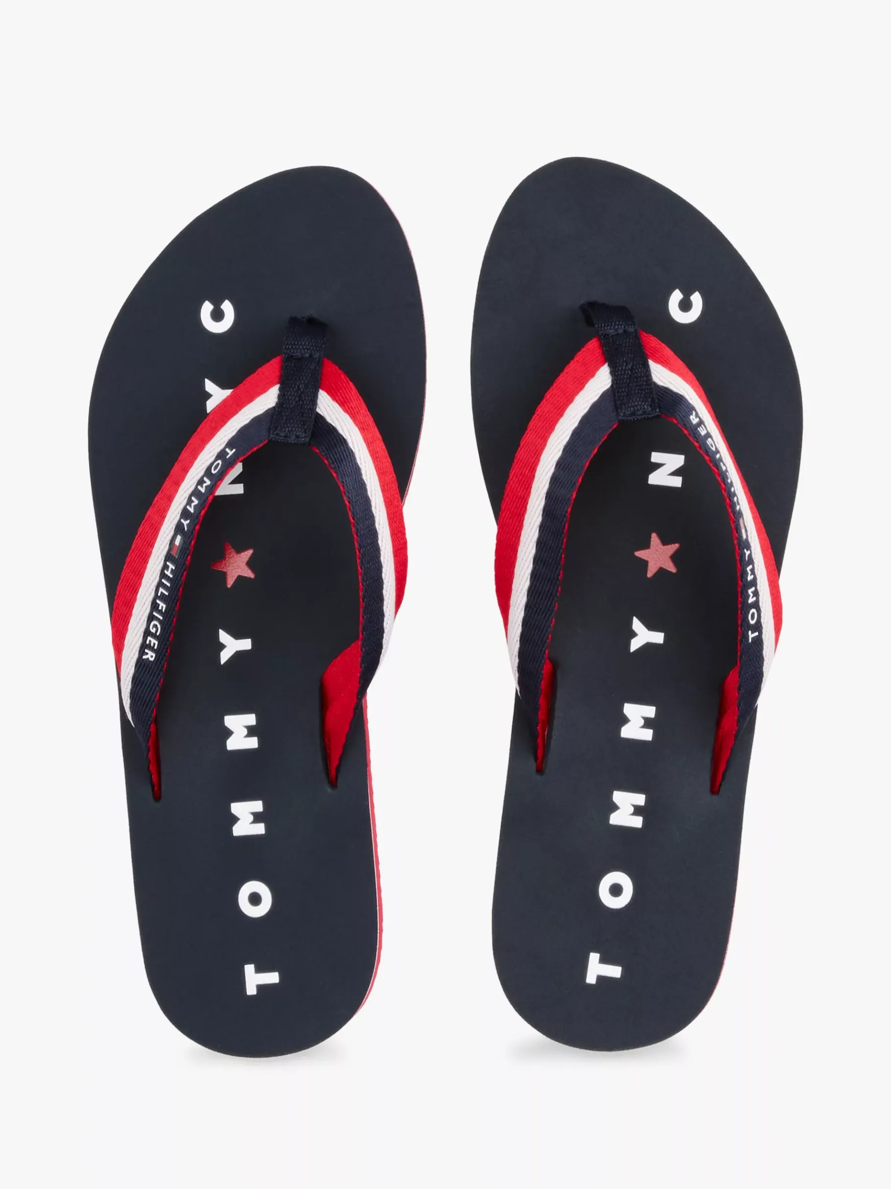 Diese gestreifte Sandale mit Zehentrenner hat ein Tommy Hilfiger-Branding auf dem gewebten Ristriemen und Tommy-Farben an der Sohle. Produktdetails • Obermaterial: gewebte Riemen • Decksohle: Ethylenvinylacetat • Laufsohle: Ethylenvinylacetat • Laufsohle mit Tommy-Streifen • Riemen mit Tommy Hilfiger-Logo • Tommy Hilfiger-Branding auf der Innensohle • gestickte Tommy Hilfiger Flag auf dem Rist Passform und Schnitt • Slipper mit Zehentrenner Material und Pflege • 100 % Polyester