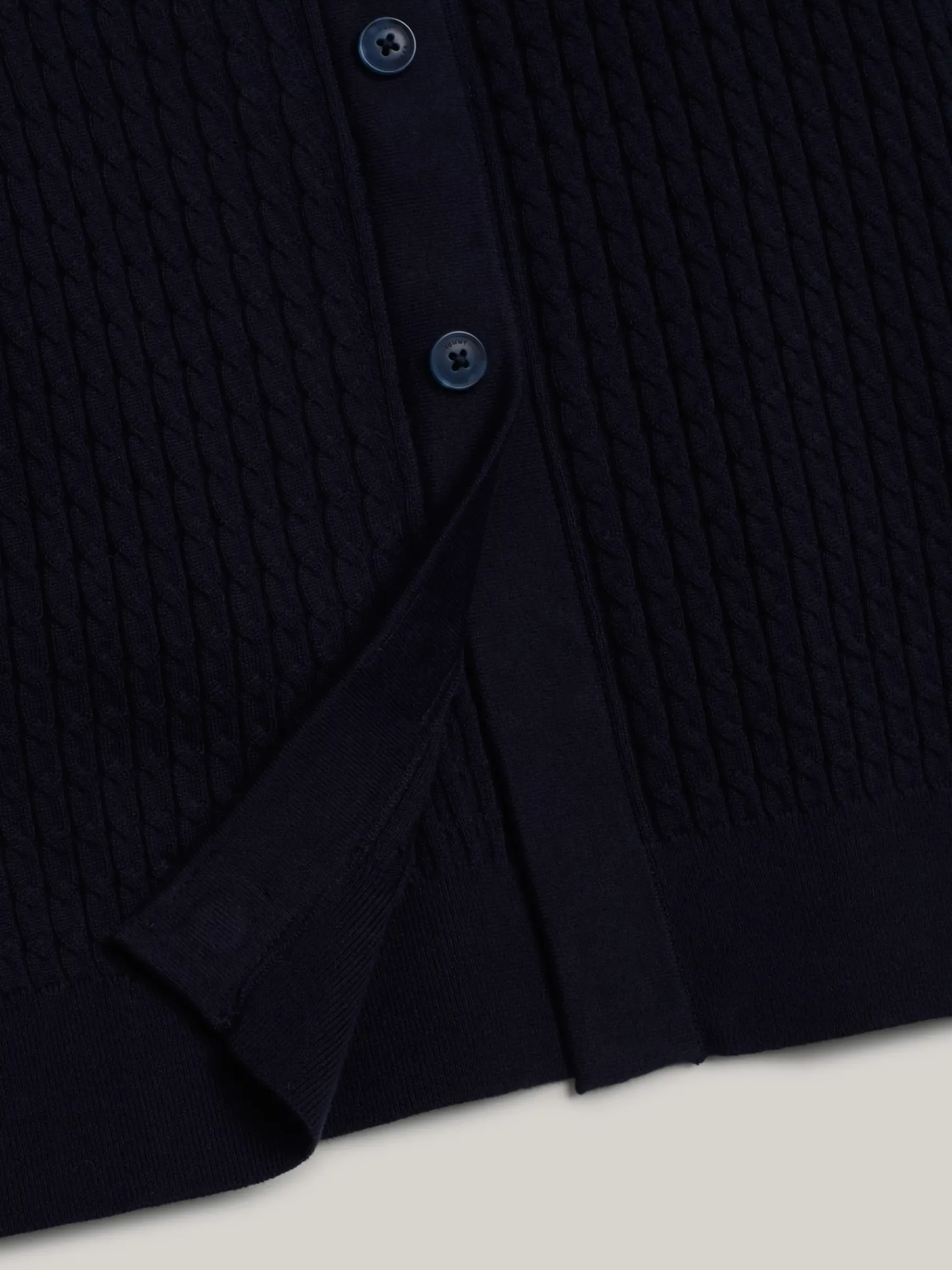 Dank Zopfstrick-Struktur und wärmender, reiner Baumwolle setzt dieser Cardigan mit Rundhalsausschnitt aktuelle Akzente und schützt vor Kälte.