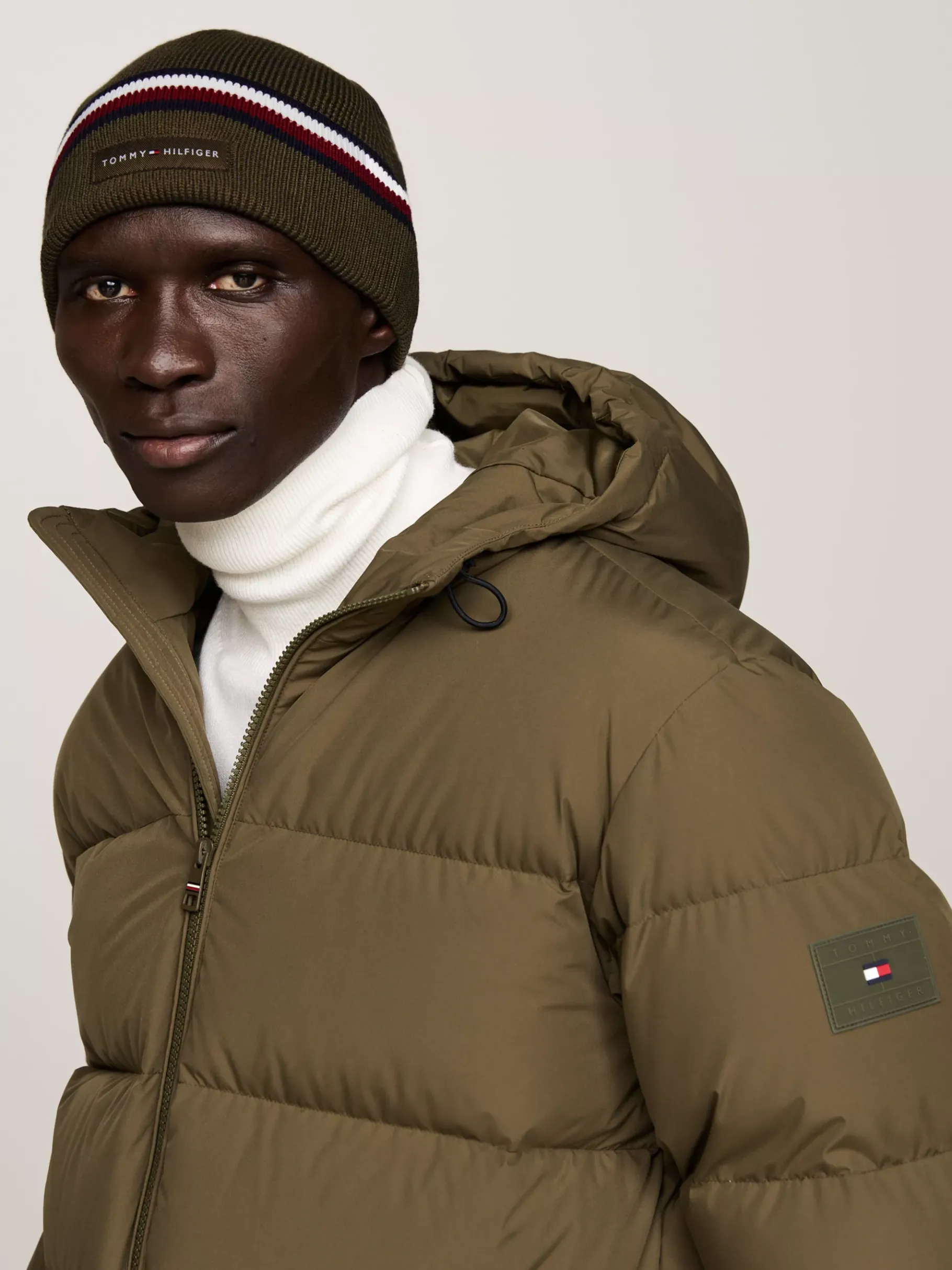 Tommy-Tape setzt am Umschlag dieser für die kalte Jahreszeit idealen Beanie einen Farbakzent.