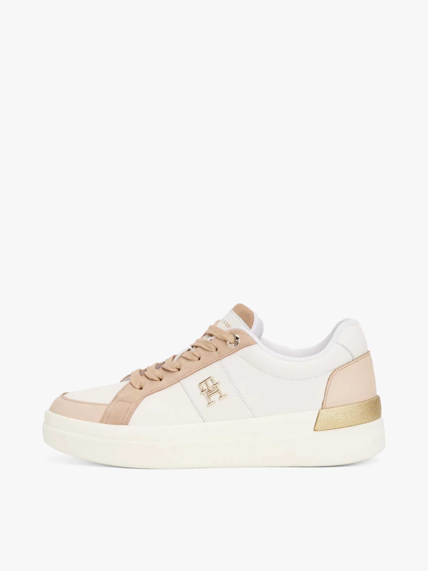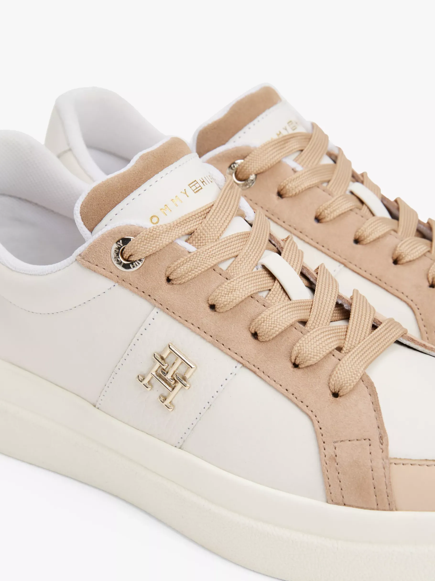 Dieser Court-Sneaker punktet mit Einsätzen aus Leder, poliertem TH-Monogramm-Emblem und Metallic-Details an der klobigen Sohle.