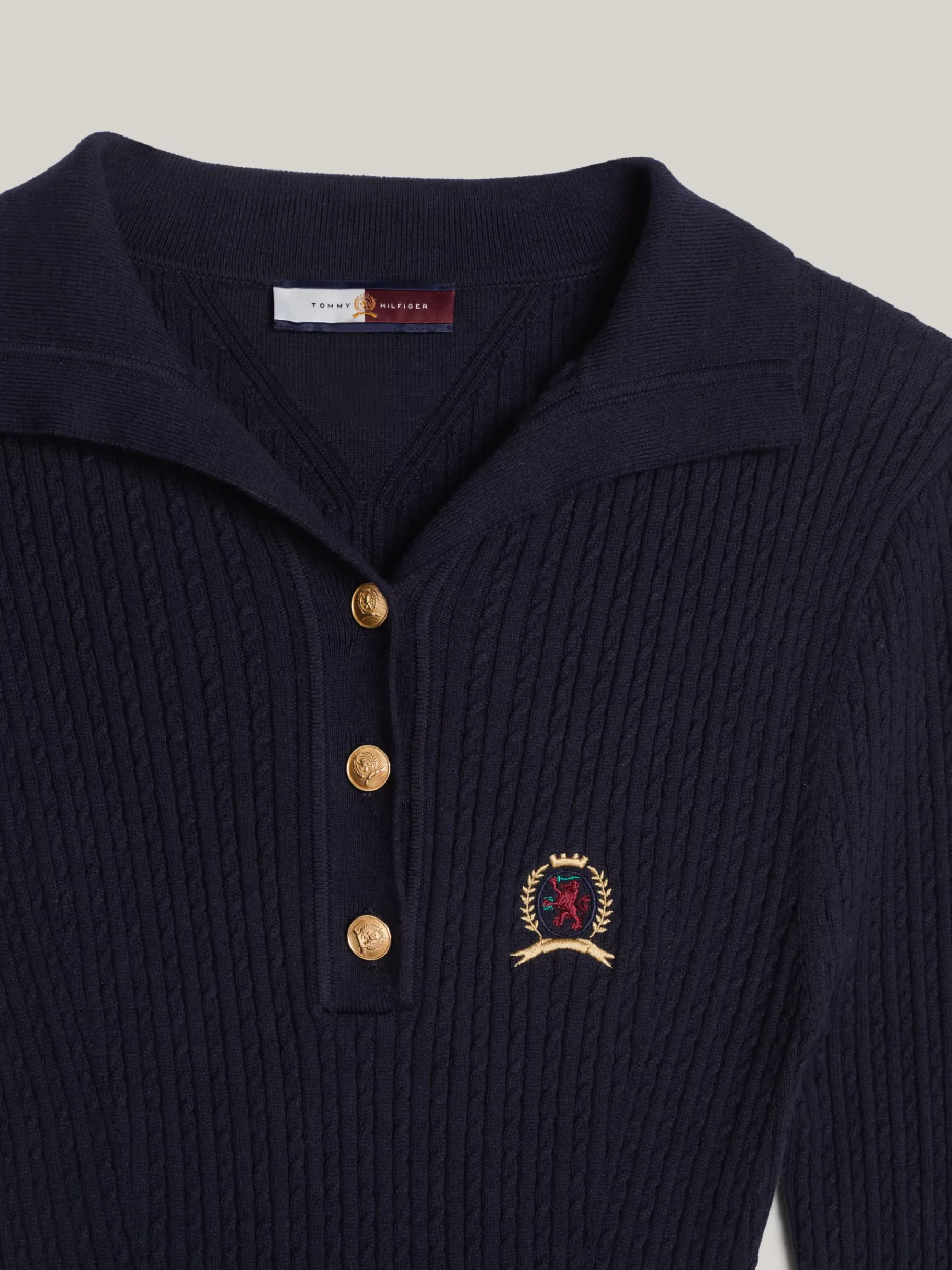 Mühelos elegant von früh bis spät: Kaschmir verleiht diesem Zopfstrick-Polokleid aus Baumwolle einen luxuriösen Touch.