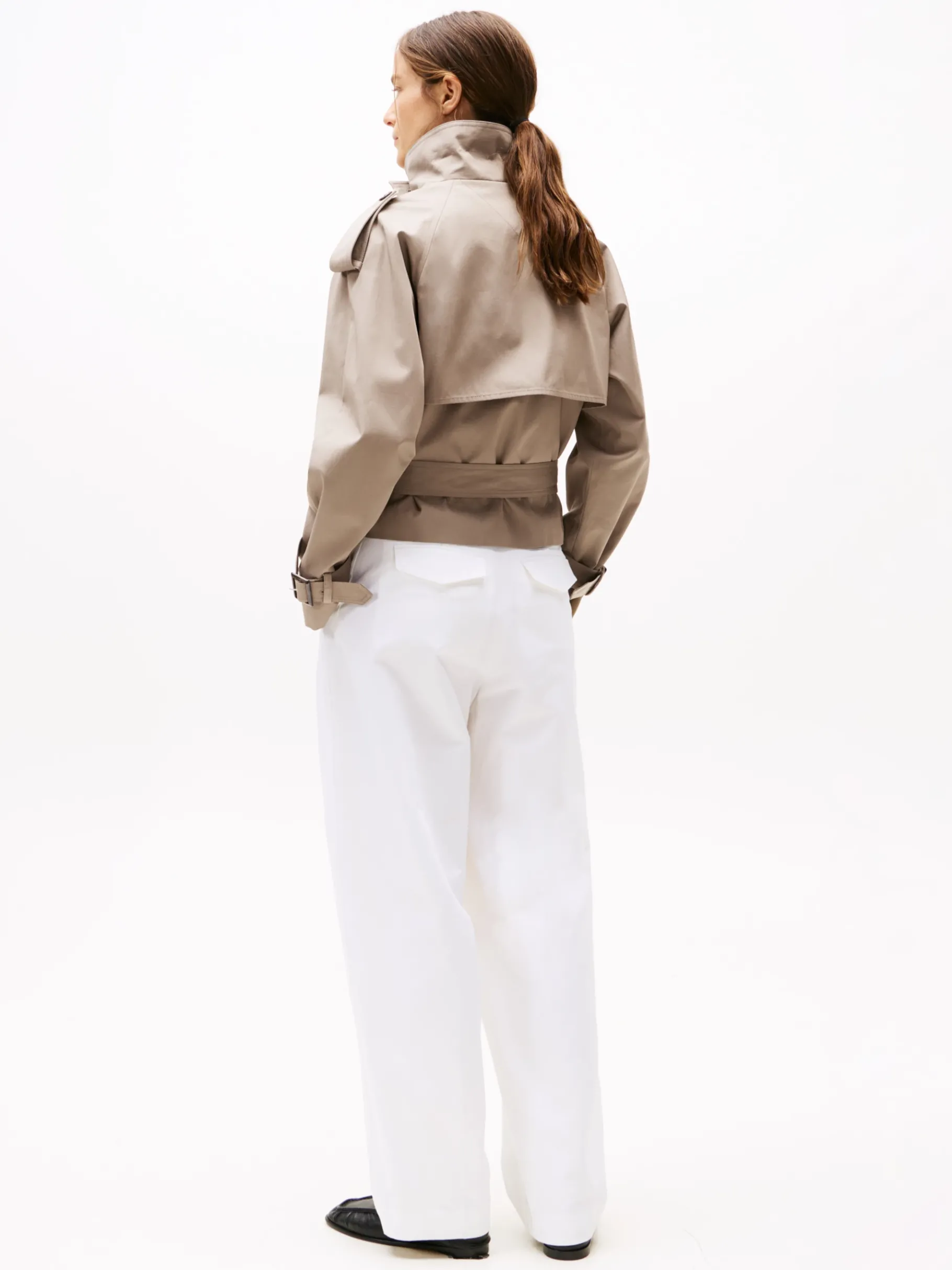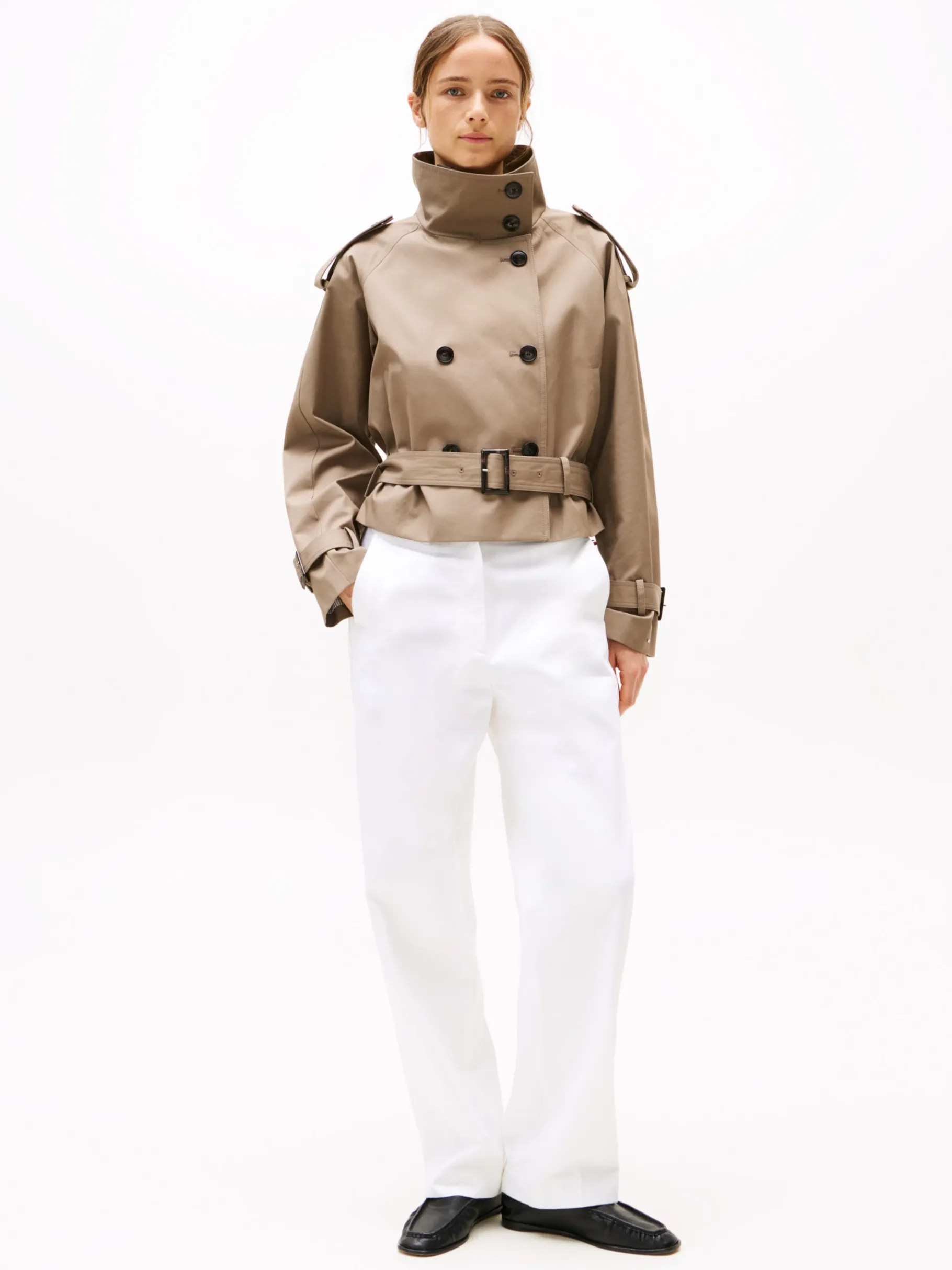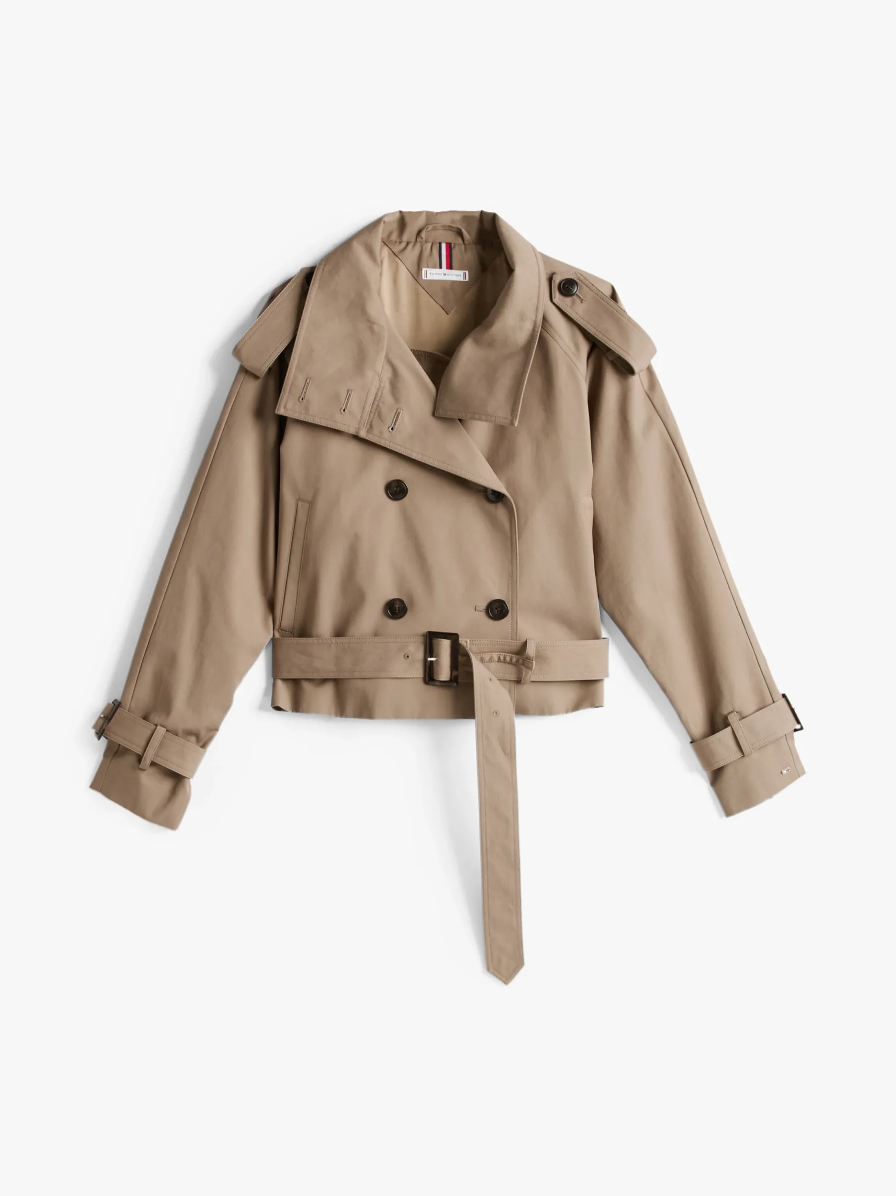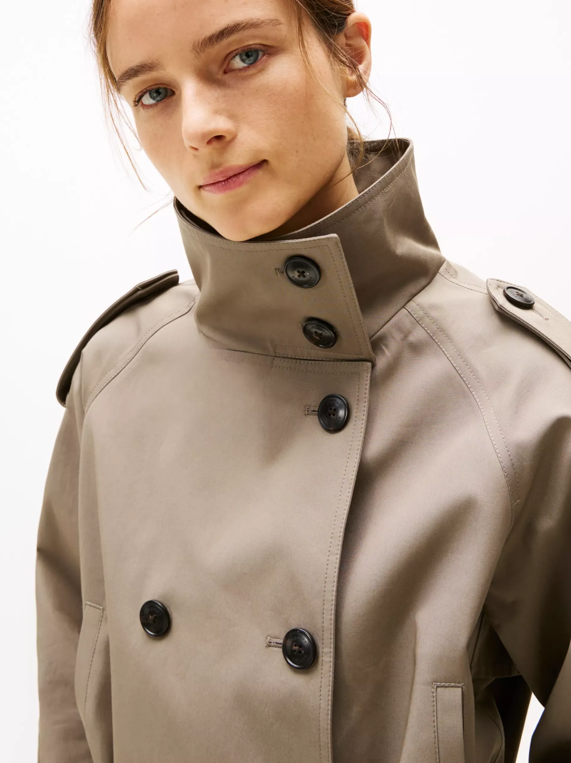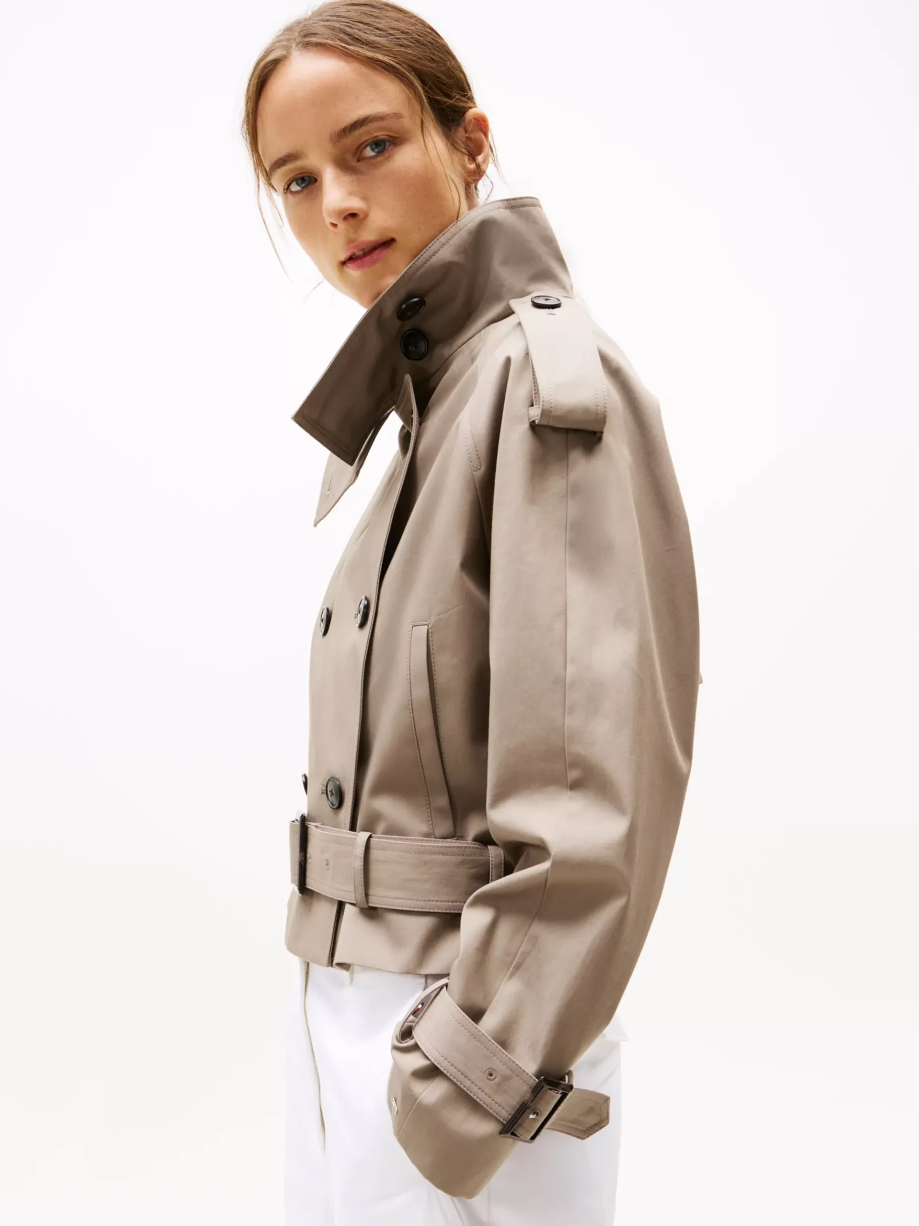 Setz bei wechselhaftem Wetter auf diesen wasserabweisenden Trenchcoat in Cropped Fit mit zeitlosen Details wie Schulterriegel.