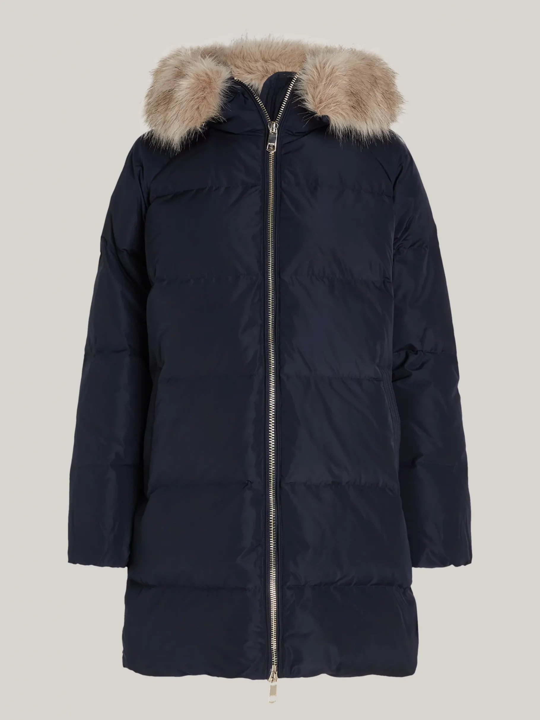 Elegant und funktional zugleich: Dieser Daunenmantel mit wasserabweisendem Finish hat einen abnehmbaren Kunstpelz-Besatz an der Kapuze.