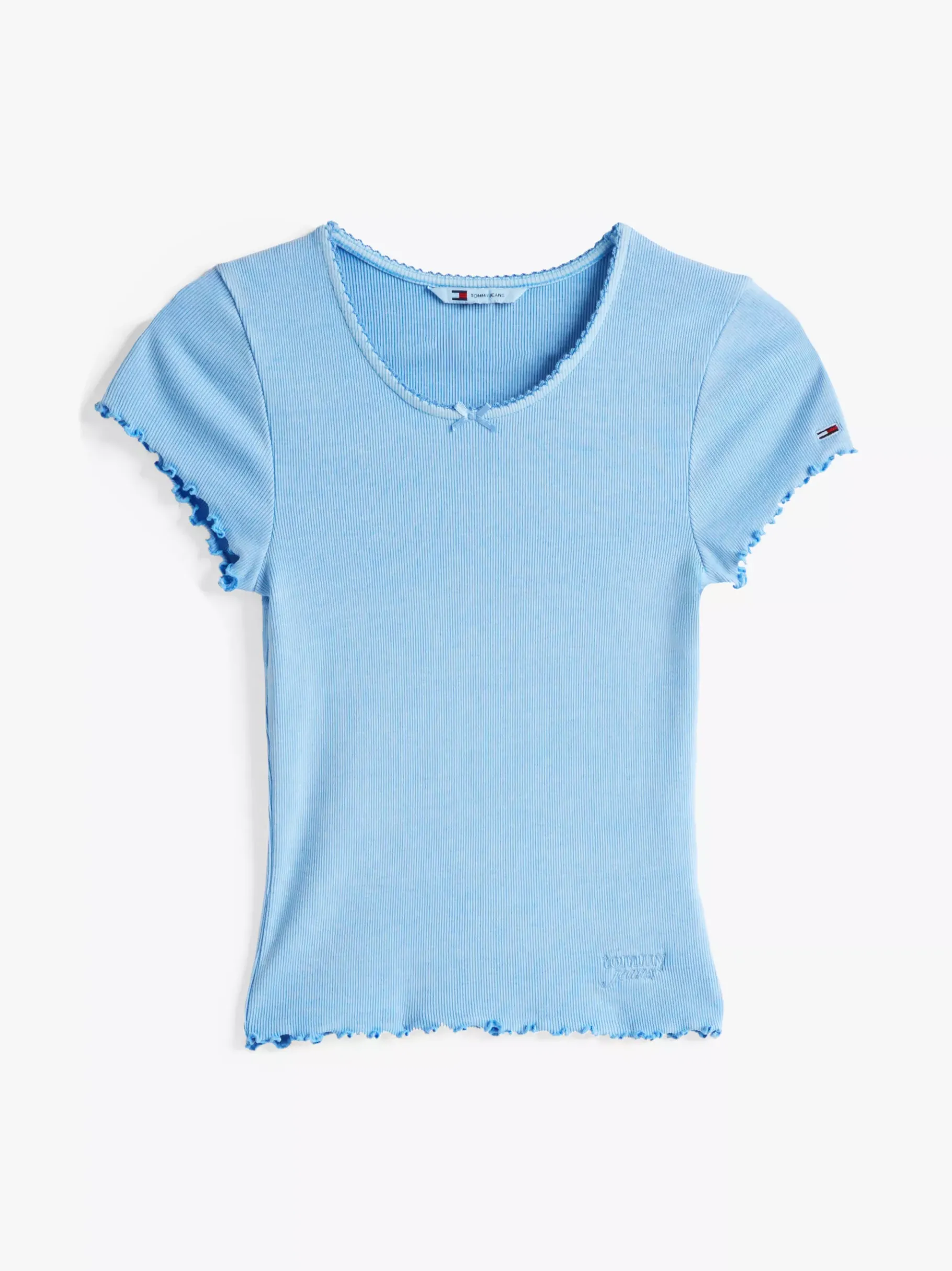 Tommy Hilfiger Geripptes Slim Fit T-Shirt mit Rüschenärmeln SUGARPLUM BLUE Store