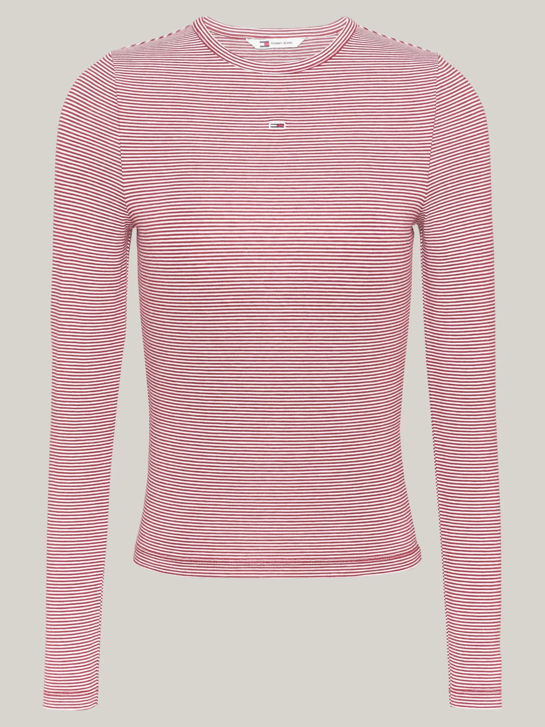 Wähle einen klassischen Look mit diesem gestreiften Langarmshirt mit gerippter Struktur und Flag-Patch auf der Brust.