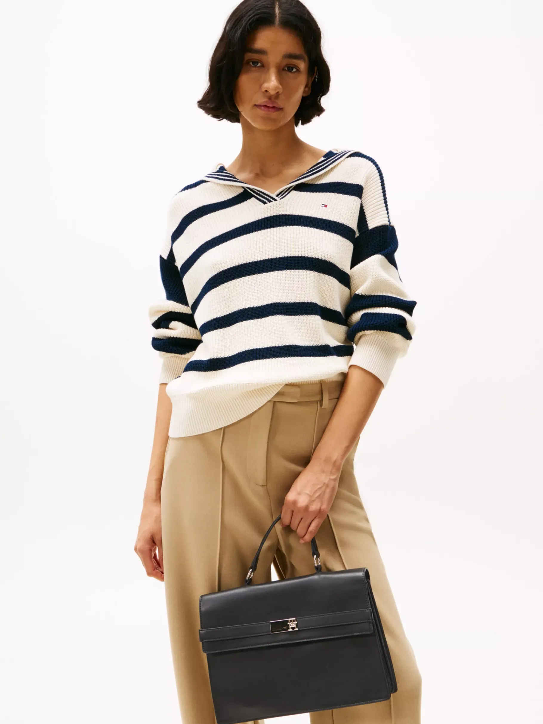 Bewahre alles Wesentliche stilbewusst und sicher in dieser Satchel mit glattem Finish, Klappverschluss und TH-Monogramm-Emblem auf.