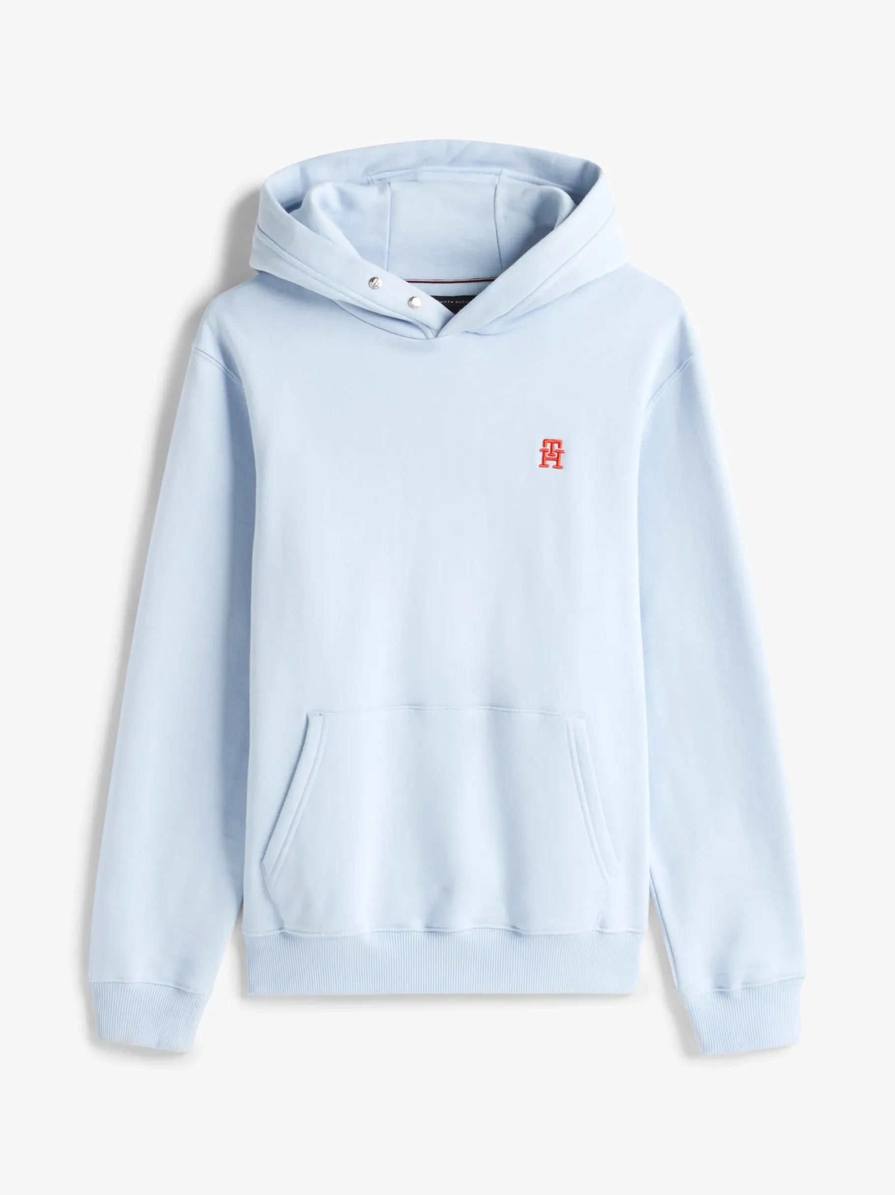Halte dich in diesem lässigen Hoodie aus reiner Baumwolle mit auffälliger TH-Monogramm-Stickerei auf der Brust stilvoll warm.