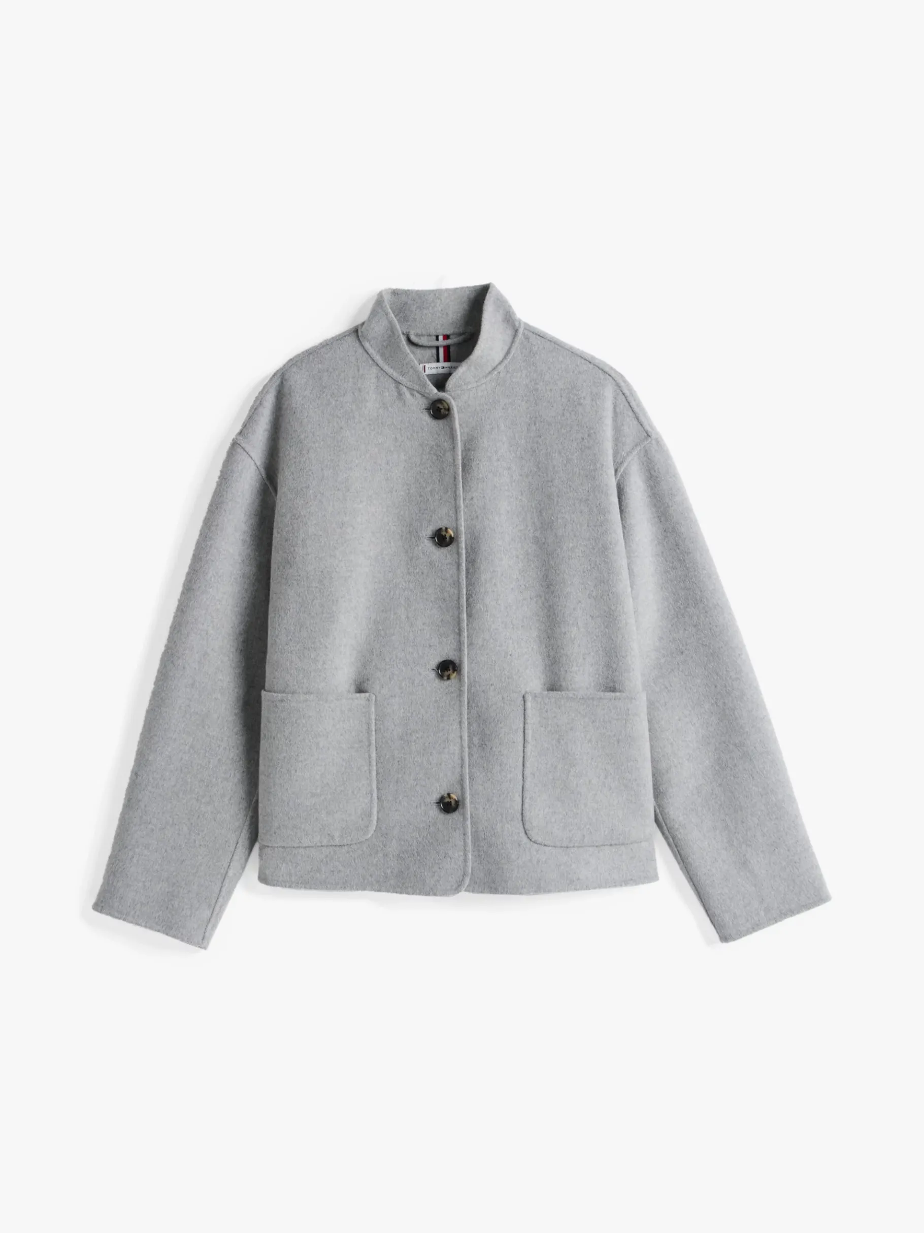 Der Stehkragen im Baseball-Look verleiht dieser strukturierten Jacke aus Wollmix mit klarer Linienführung einen kleinen Style-Akzent.