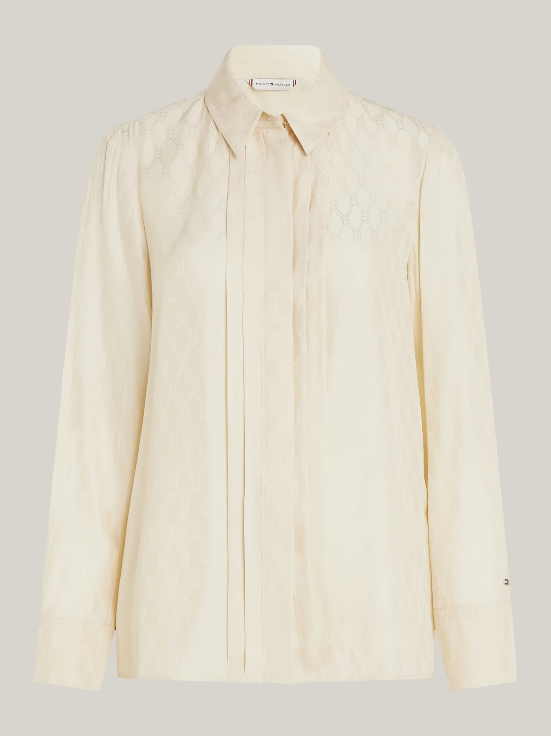 Ein Rauten-Jacquardgewebe mit Flags verleiht dieser fließend fallenden Bluse mit hohem Seidenanteil elegante Vibes.