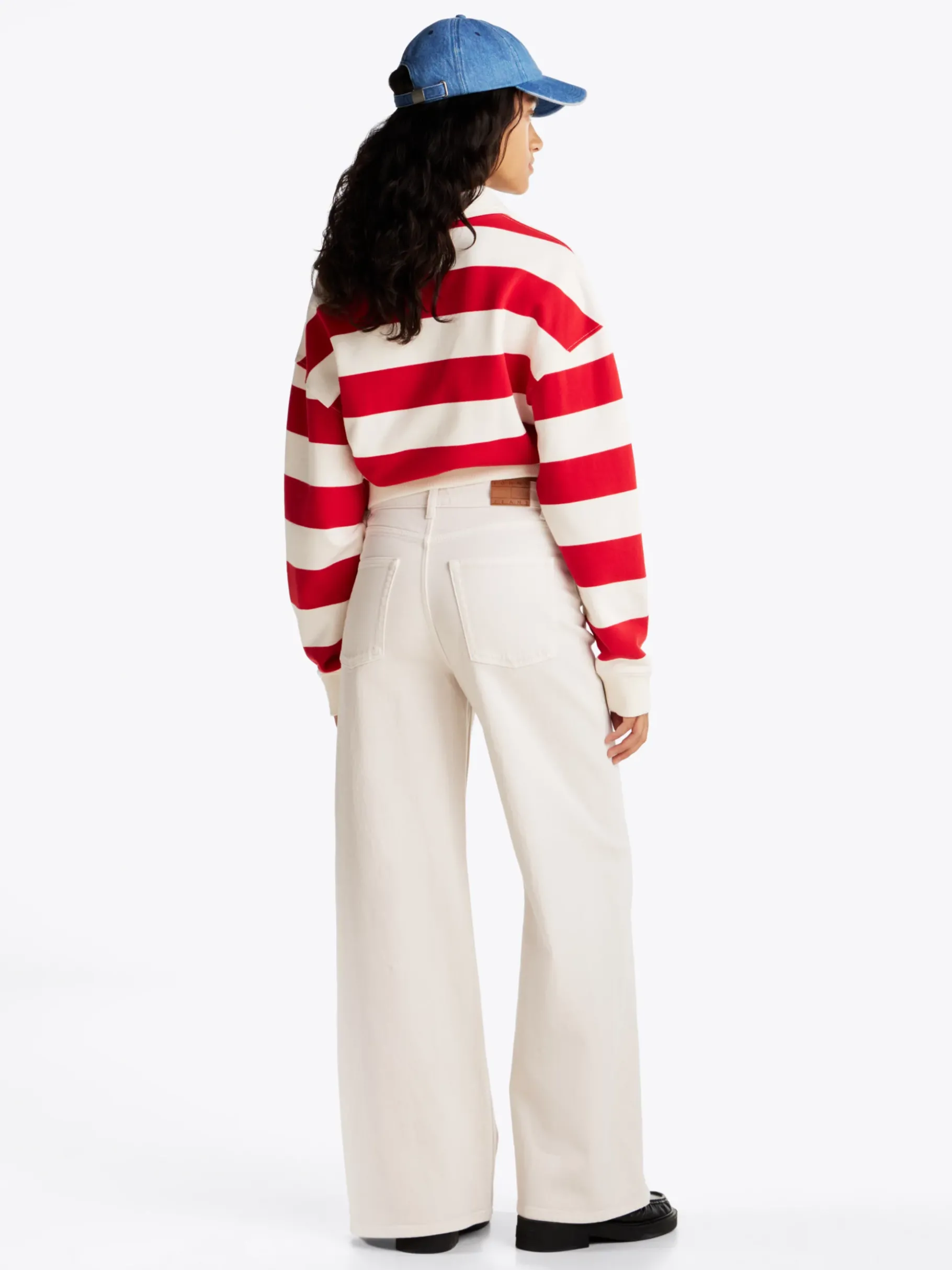 Kreiere raffinierte Looks dank dieser Denim-Jeans mit weitem Bein, 5-Pocket-Style und dezentem Branding-Akzent.