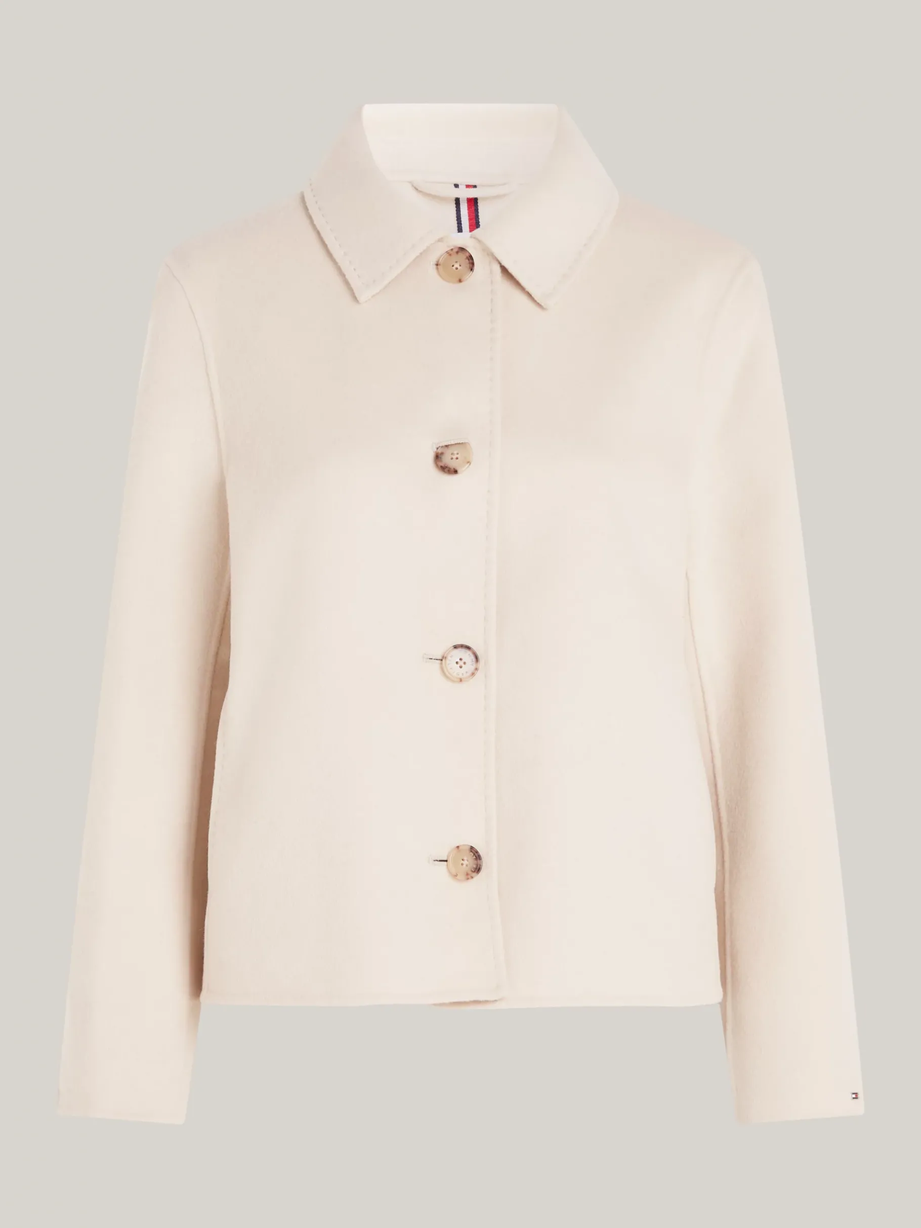 Dieser kurze, einreihige Trenchcoat aus Double Face-Gewebe mit hohem Wollanteil passt perfekt in die Übergangszeit.