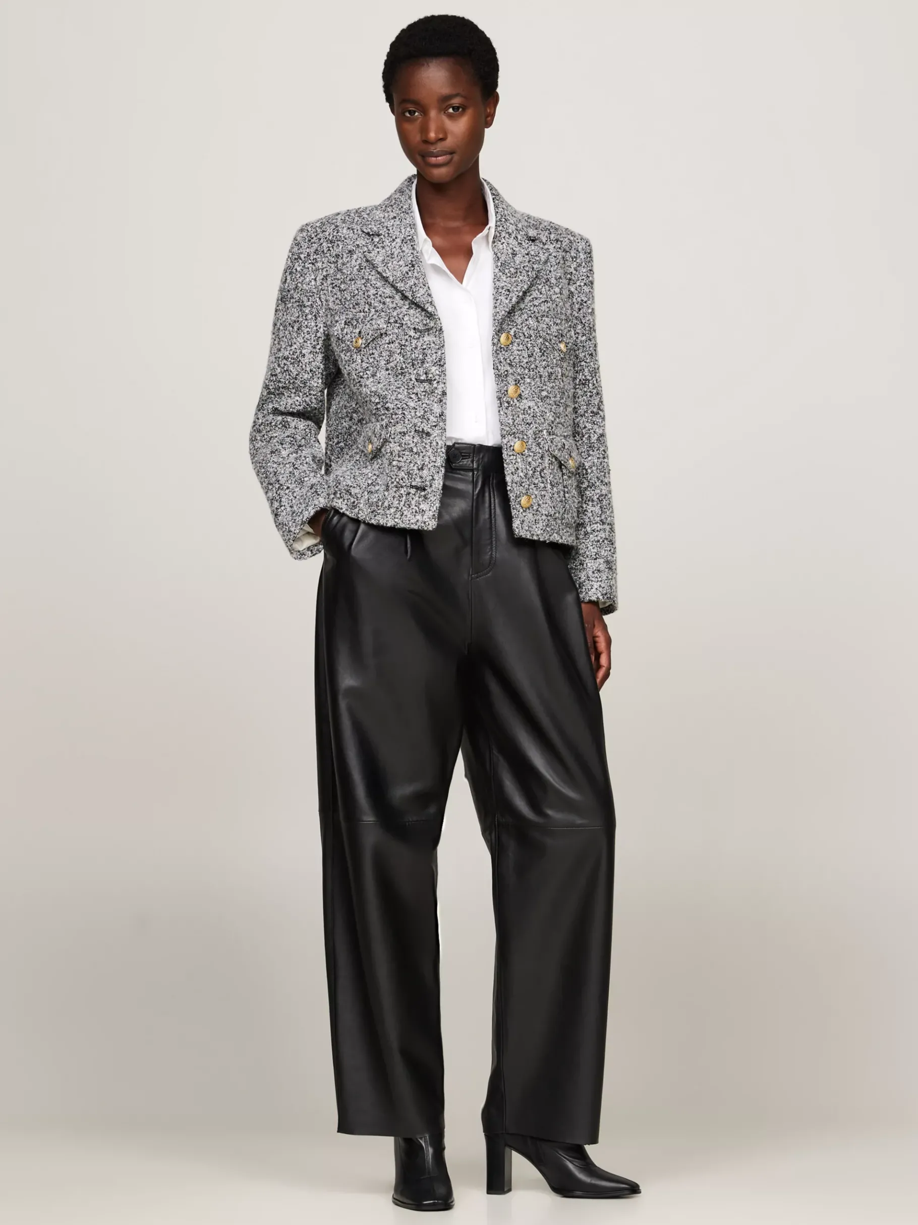 Mit hohem Blockabsatz und aktuellem Square Toe sorgt dieser elegante Lederstiefel für einen smarten Auftritt.