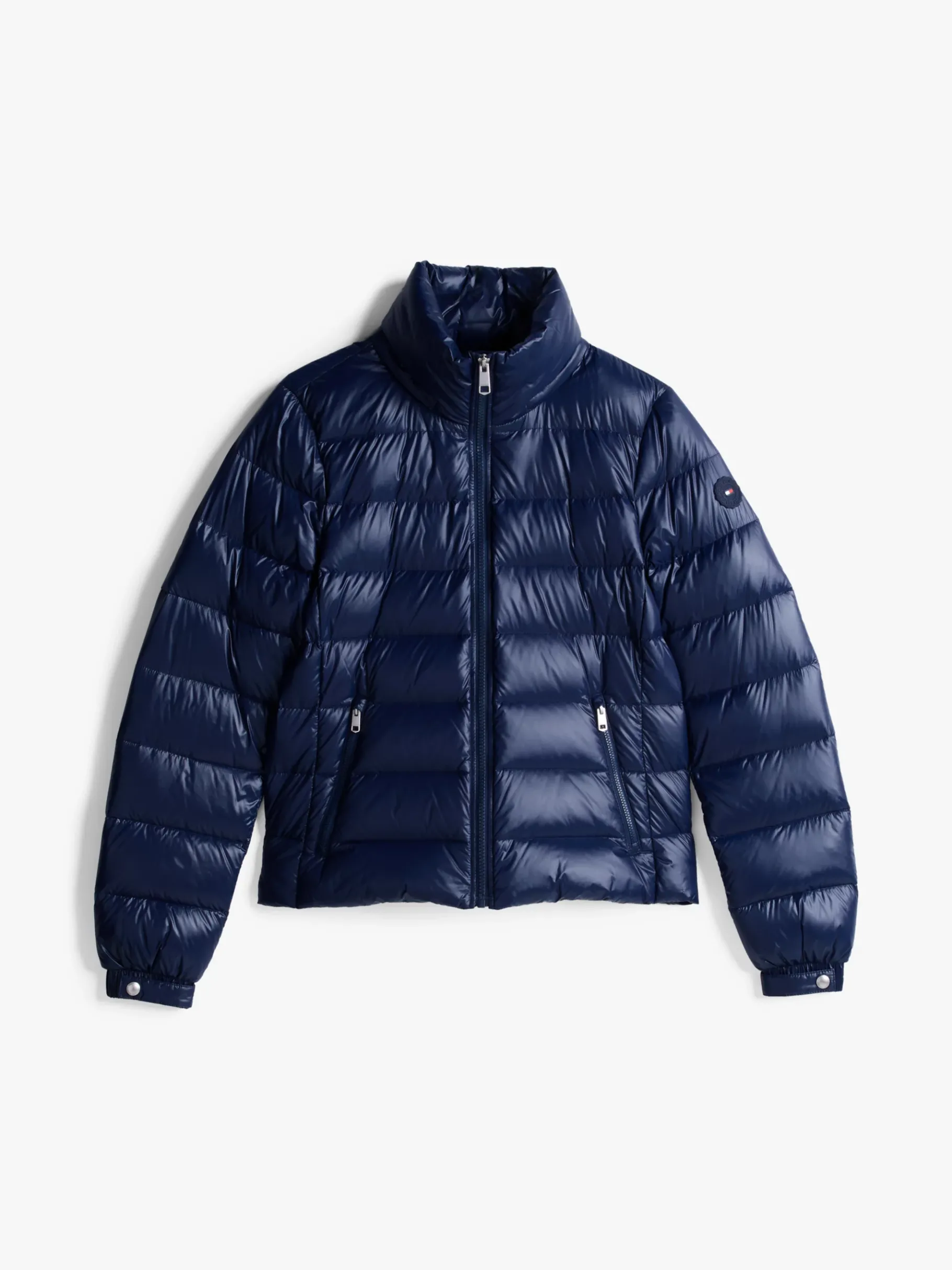 Das glänzende Finish auf dem wasserabweisenden Stoff verleiht dieser leichtgewichtigen, daunengefüllten Puffer-Jacke mit verstaubarer Kapuze einen aktuellen Look.