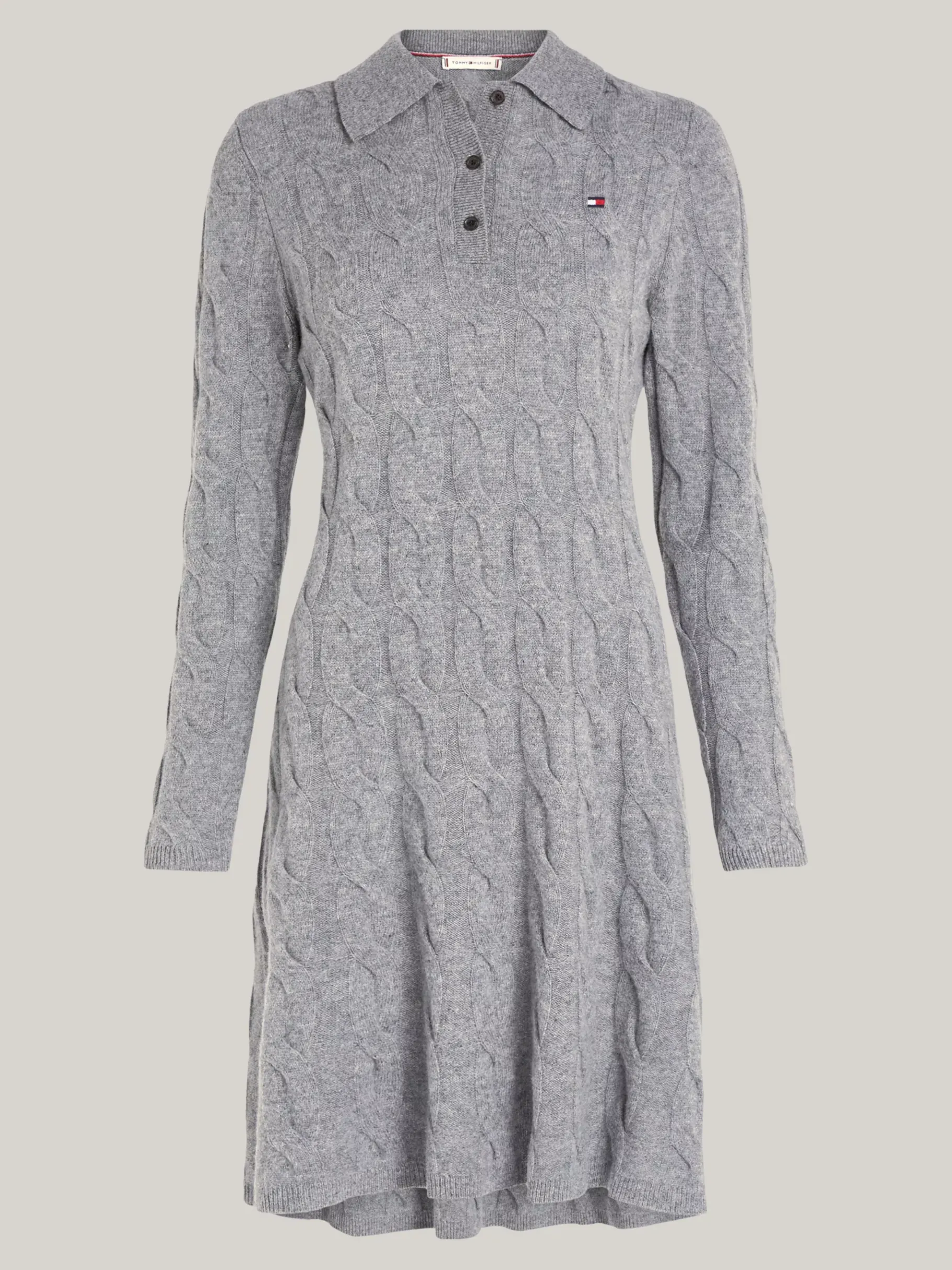 Ein übergroßes Zopfstrickmuster verleiht diesem Smart-casual-Pulloverkleid aus hochwertiger Wolle mit Polokragen Retro-Vibes.