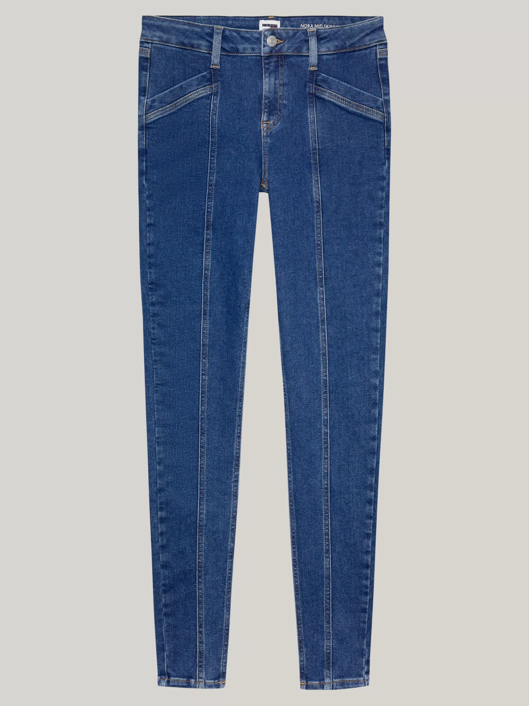 Diese aktuelle Skinny Fit Jeans punktet mit stilvollen asymmetrischen Taschen und auffälligen Nahtdetails vorne.