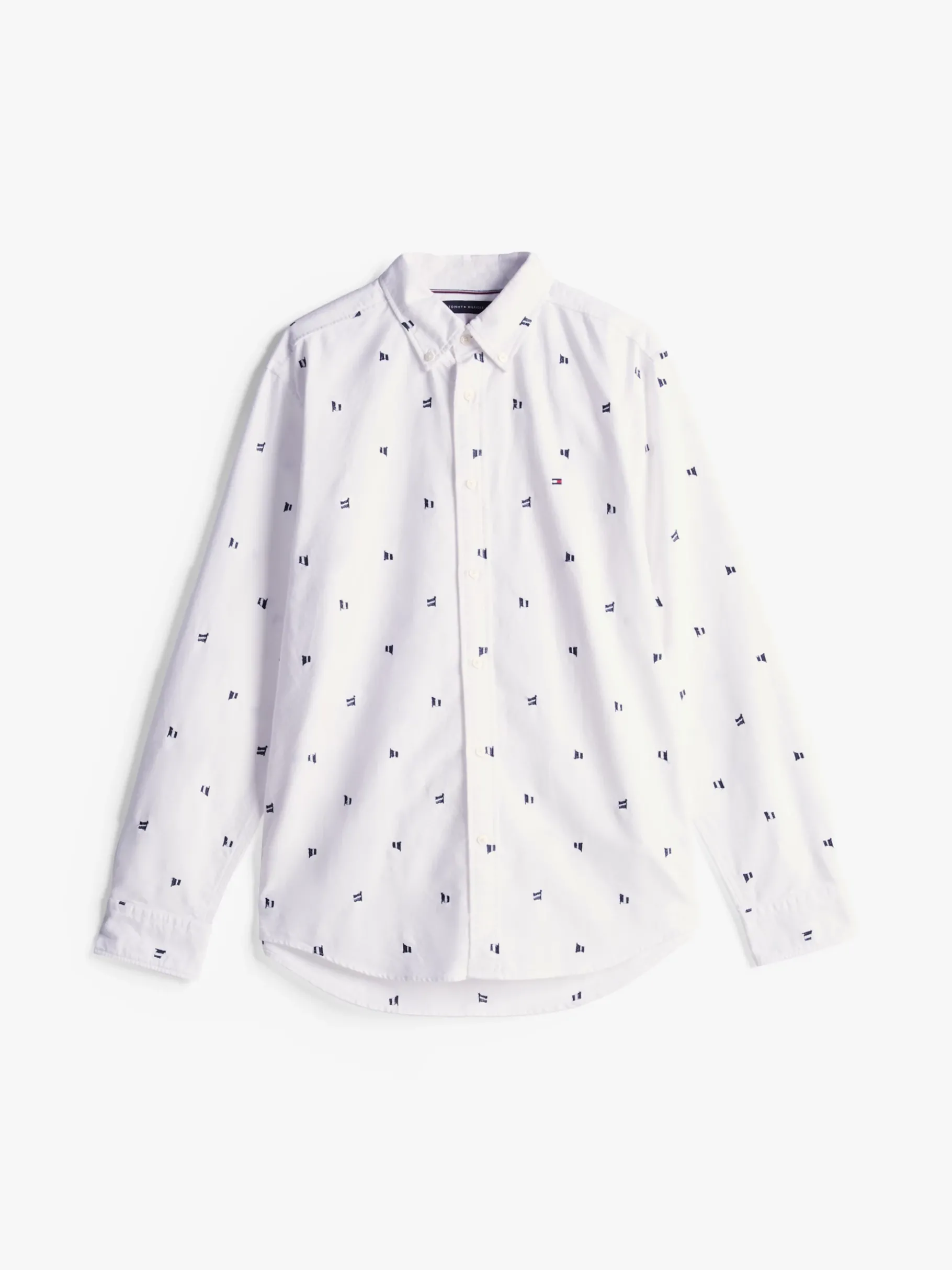 Stich aus der Masse heraus: Dieses gewebte Hemd mit Button-down-Kragen punktet mit einem auffälligen Motion Flag-Design.