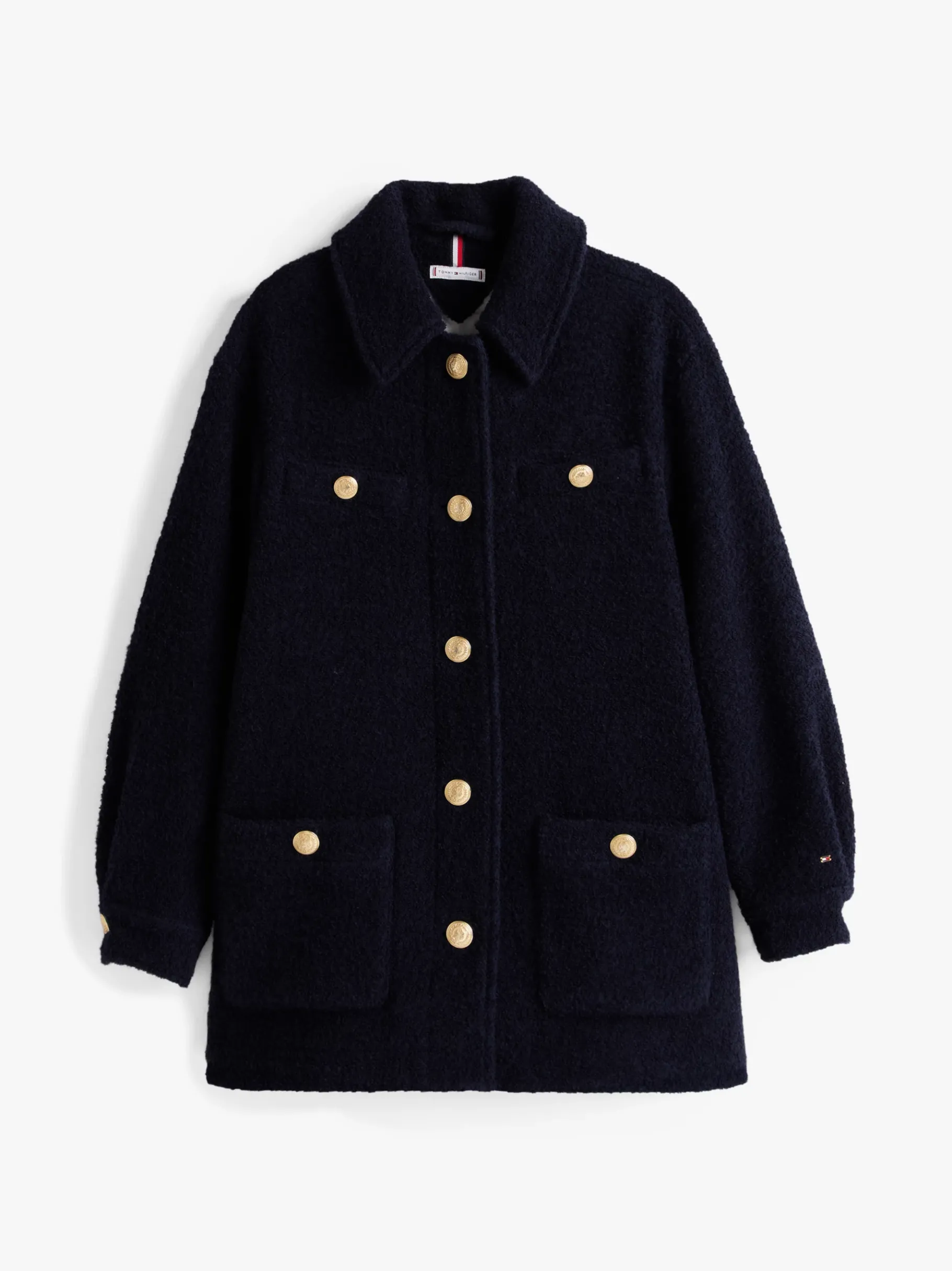 Diese elegante Bouclé-Shacket mit hohem Baumwollanteil spendet viel Wärme, während der Relaxed Fit lässige Vibes verströmt.