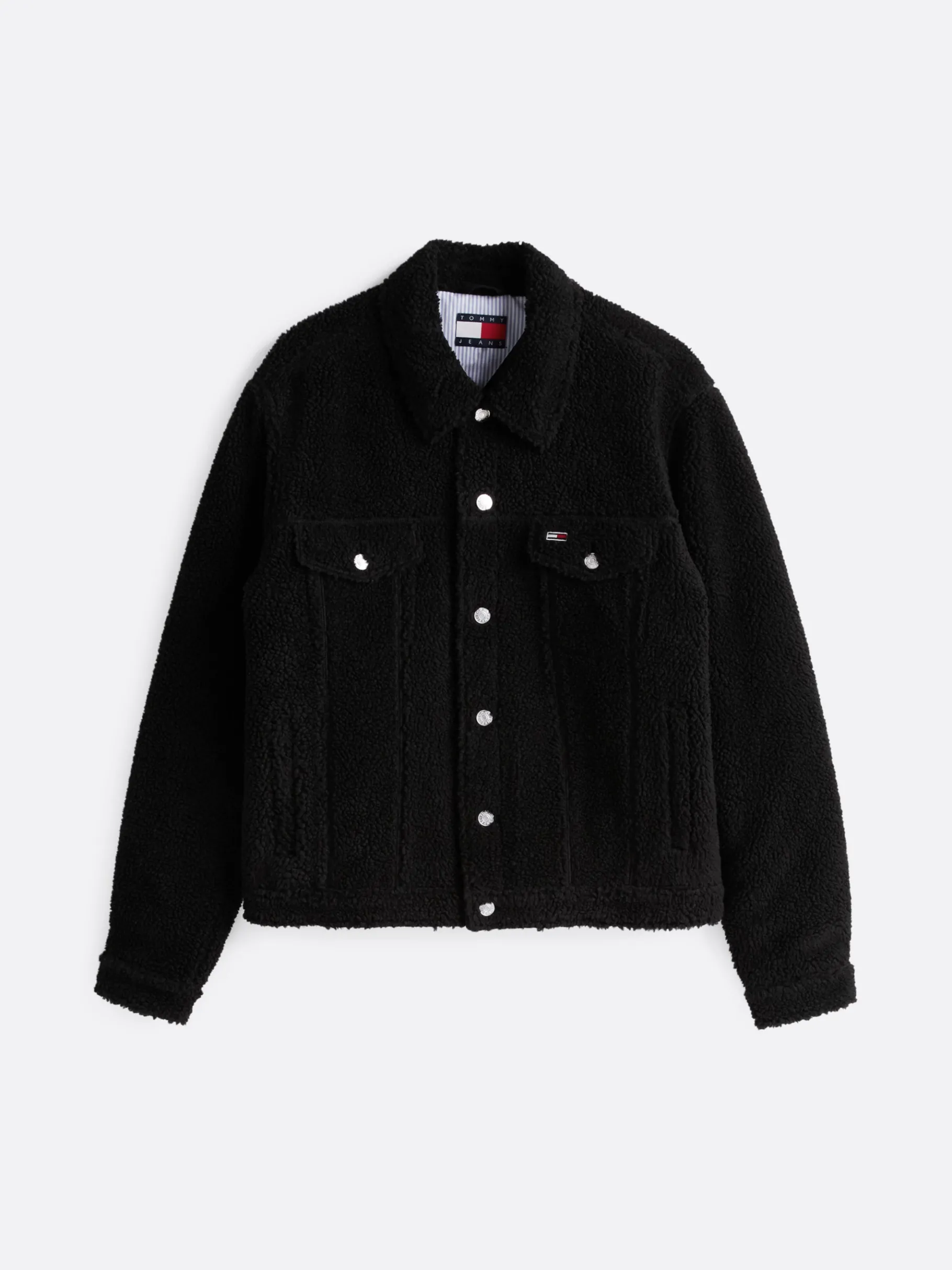 Zeige deinen Statement-Look bei kaltem Wetter mit dieser klassischen Truckerjacke aus strukturiertem Teddy-Fleece mit gestepptem Innenfutter.