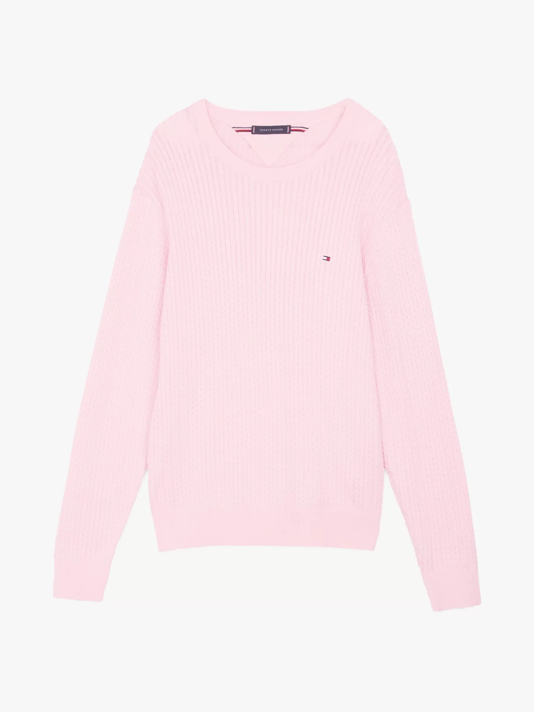 Tommy Hilfiger Rundhals-Pullover aus Fischgrät-Strick PINK SHADE Hot