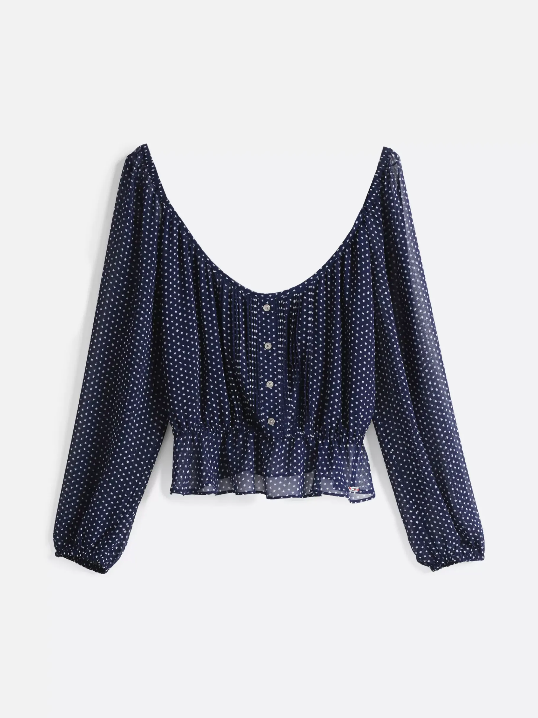 Verströme in dieser Bluse mit Stern-Print und transparenten langen Ärmeln feminine Vibes.