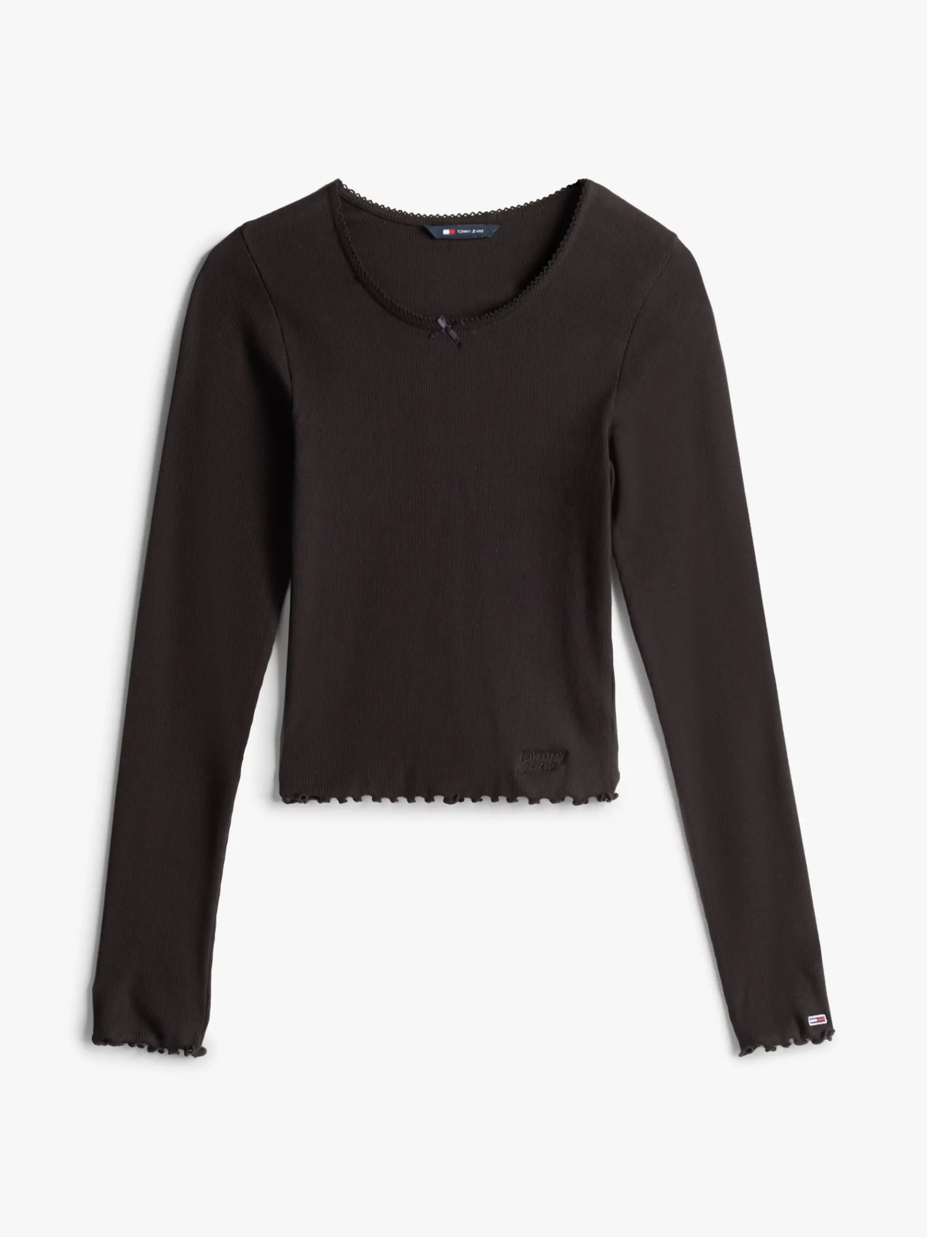Trag dieses Slim Fit Langarmshirt mit gerippter Struktur und süßen Bogenkanten einzeln oder zusammen mit anderen Kleidungsstücken.