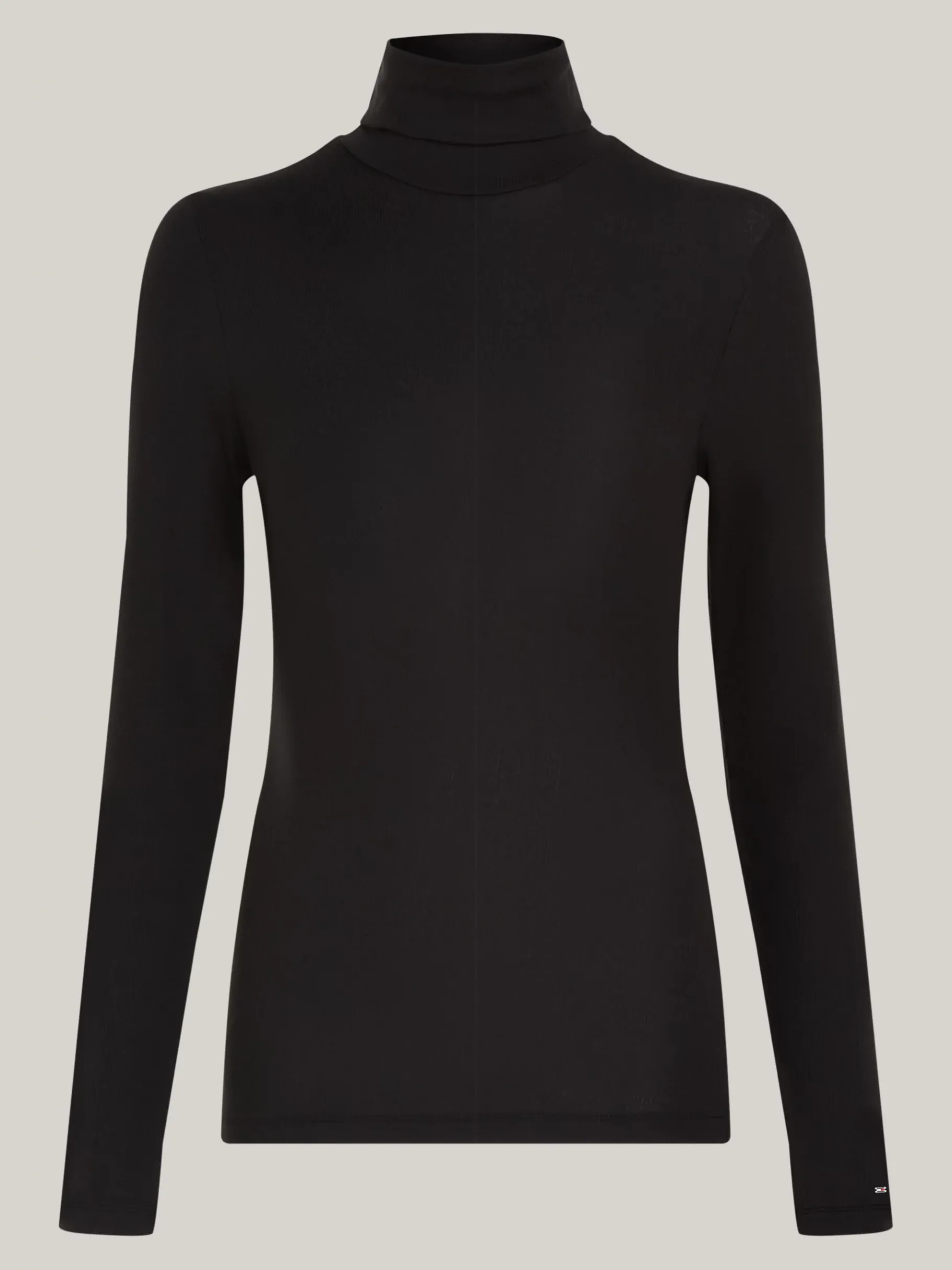 Der figurbetonte Schnitt macht aus diesem Langarmshirt das perfekte Layering-Piece, während die gerippte Struktur und der Rollkragen für Wärme sorgen.