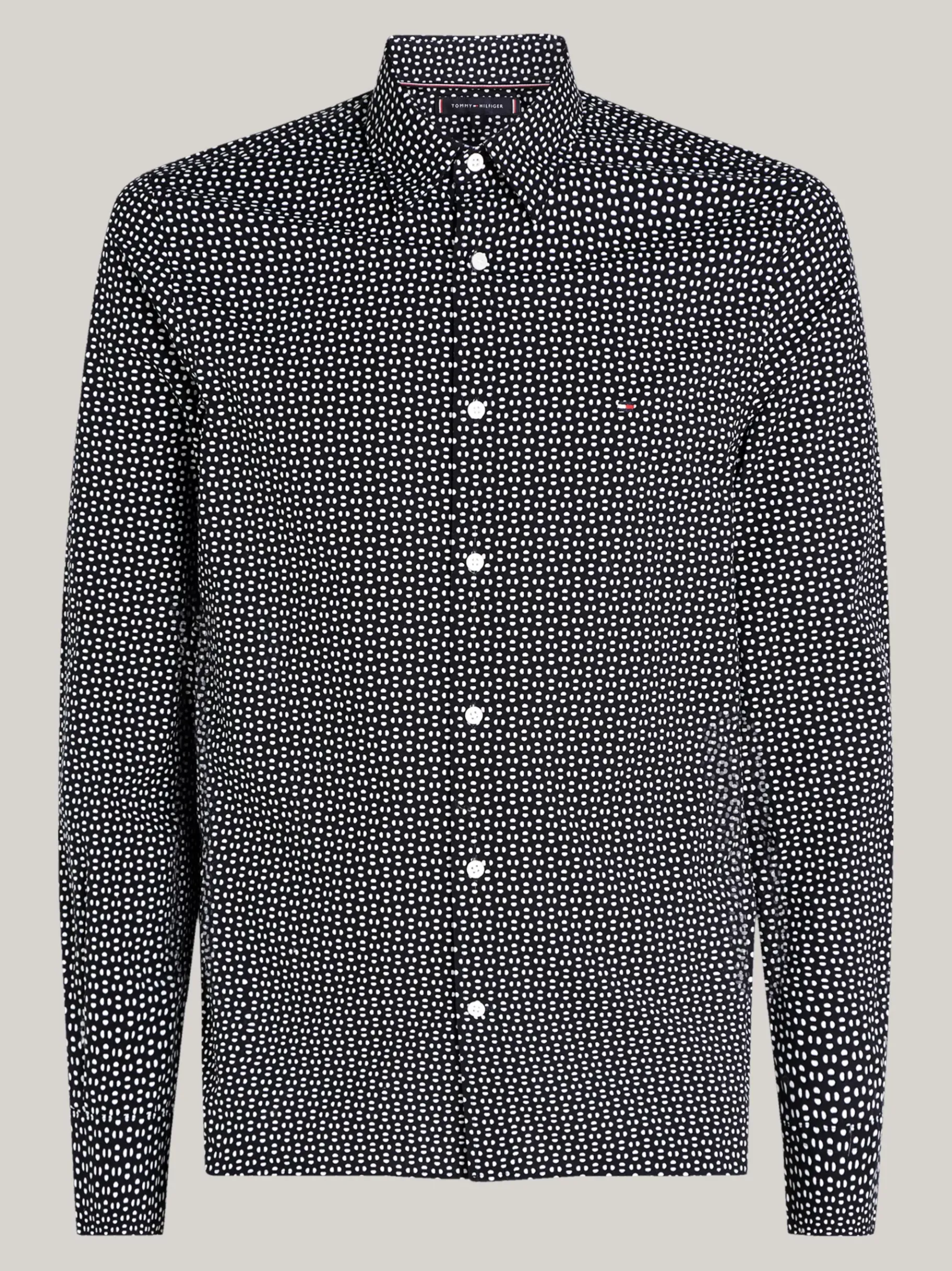 Kombiniere dieses auffällige Slim Fit Hemd aus Baumwoll-Popeline mit Print und Tommy-Branding in lässig-eleganten Outfits.