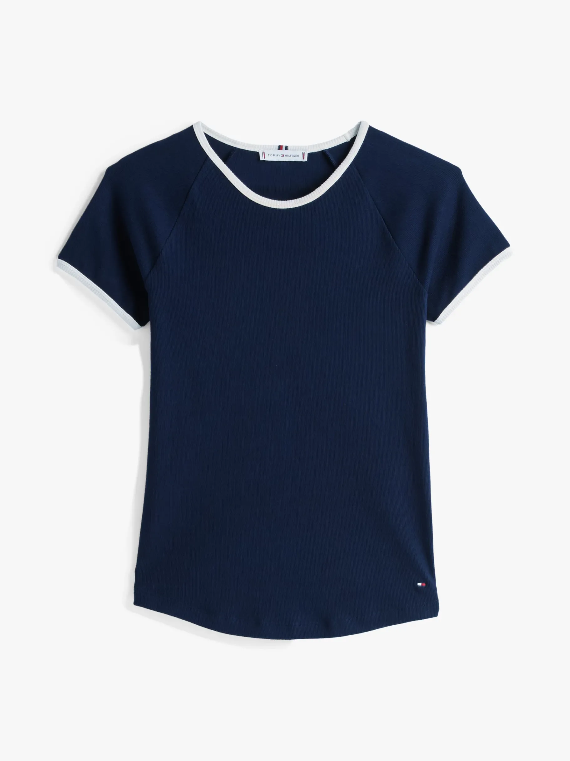 Dank Kontrast-Einfassung an Kragen und Bündchen bringt dieses Slim Fit Ringer-T-Shirt Retro-Vibes in deine Outfits.