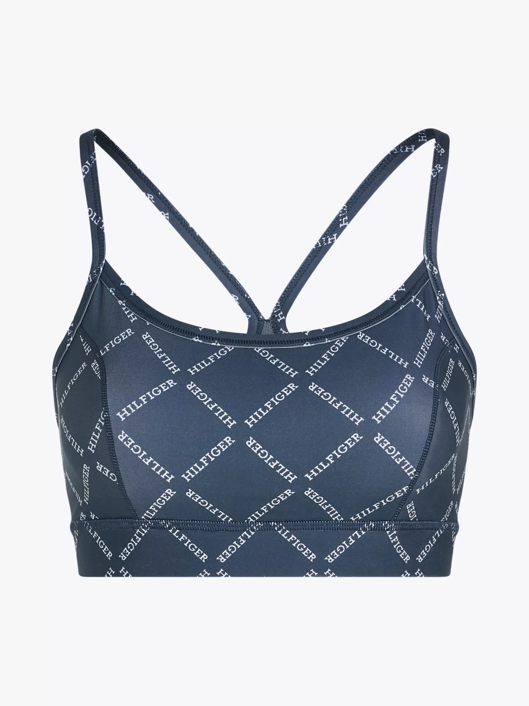 Dieser Sport-BH mit Racerback, tiefem Rundhalsausschnitt und Hilfiger-Monotype-Logo im Rauten-Design verleiht deinem Yoga-Outfit einen besonderen Touch.