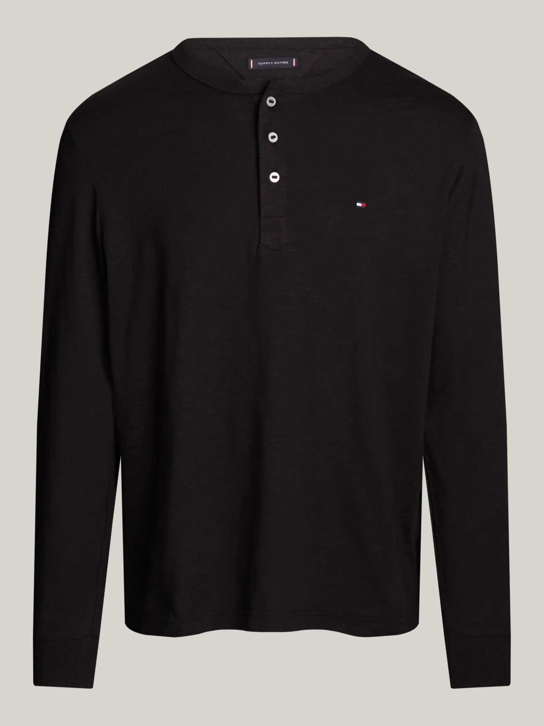 Trage einen zeitlosen Casual-Style mit diesem Henley-Langarmshirt aus weicher, strukturierter Flammgarn-Baumwolle.
