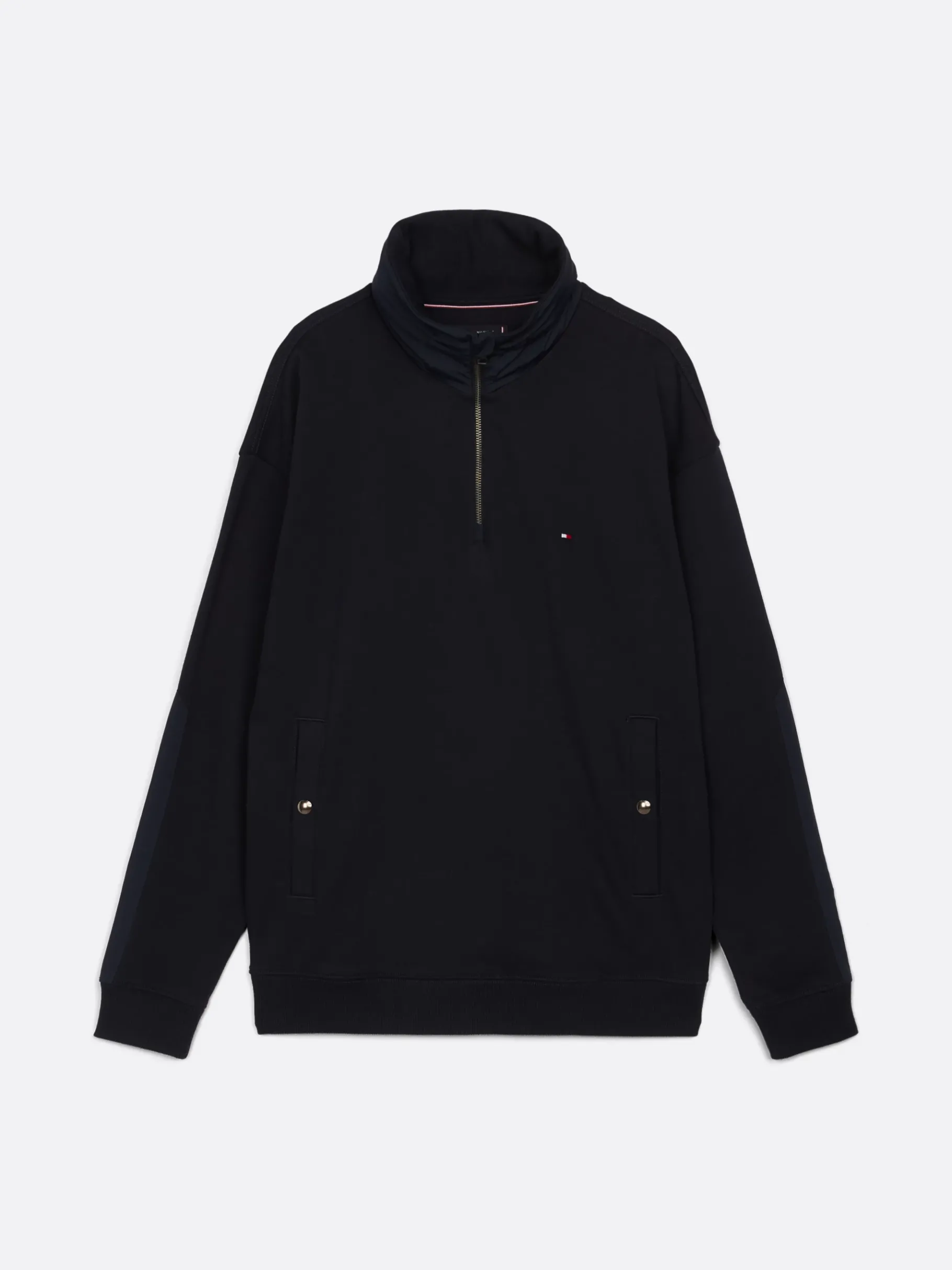 Ein Stehkragen mit Kontrast-Struktur verleiht diesem Sweatshirt mit halblangem Reißverschluss technisch-sportliche Vibes.