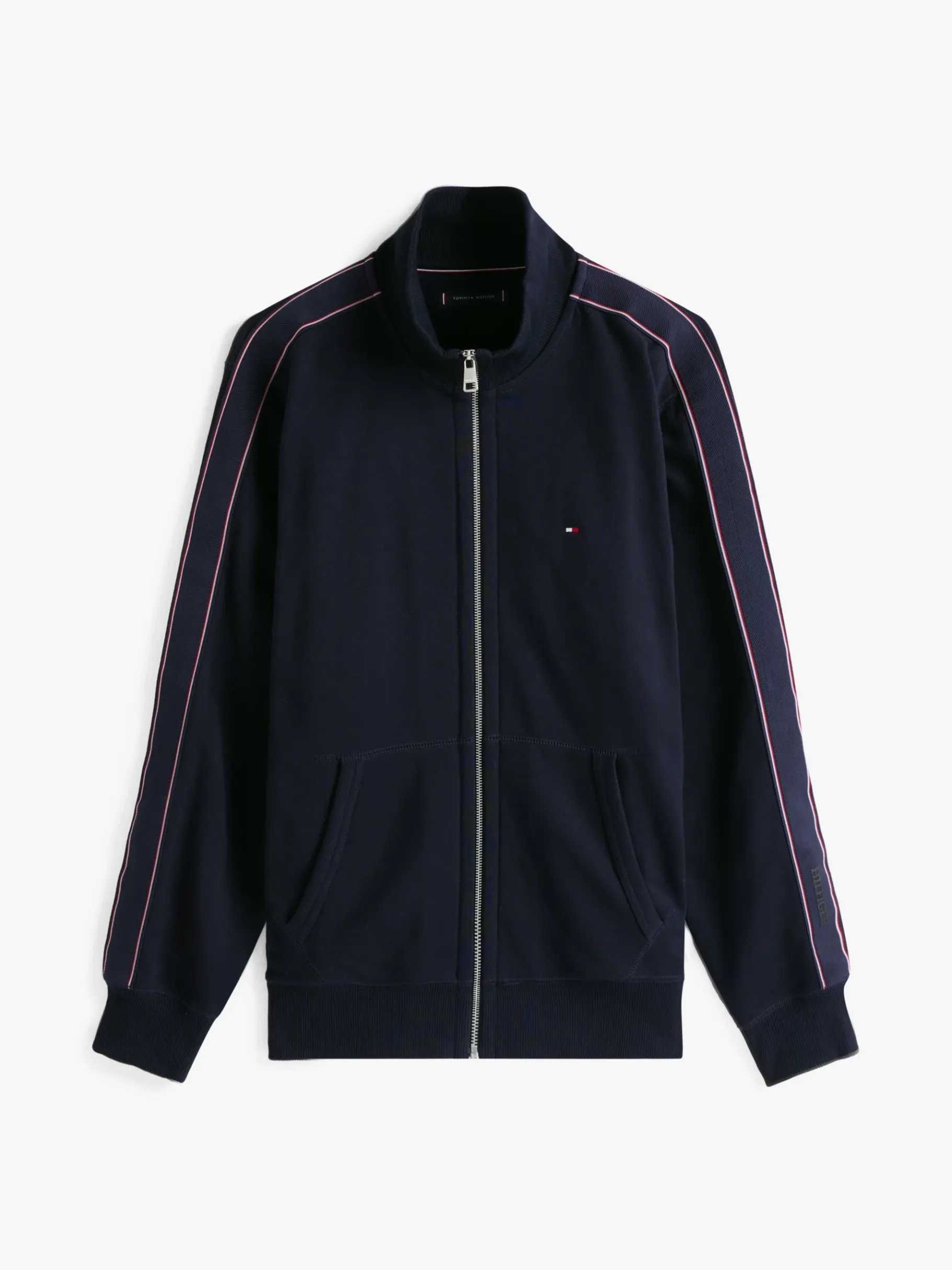 Kontrast-Tape-Details entlang der Ärmel verleihen diesem sportlichen Sweatshirt mit Reißverschluss smarte Retro-Vibes.