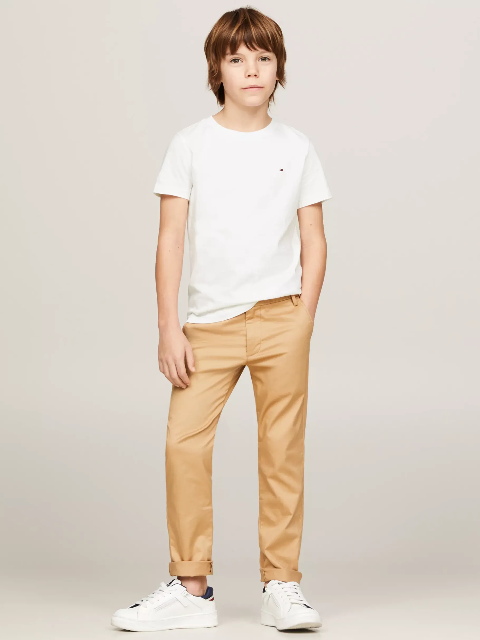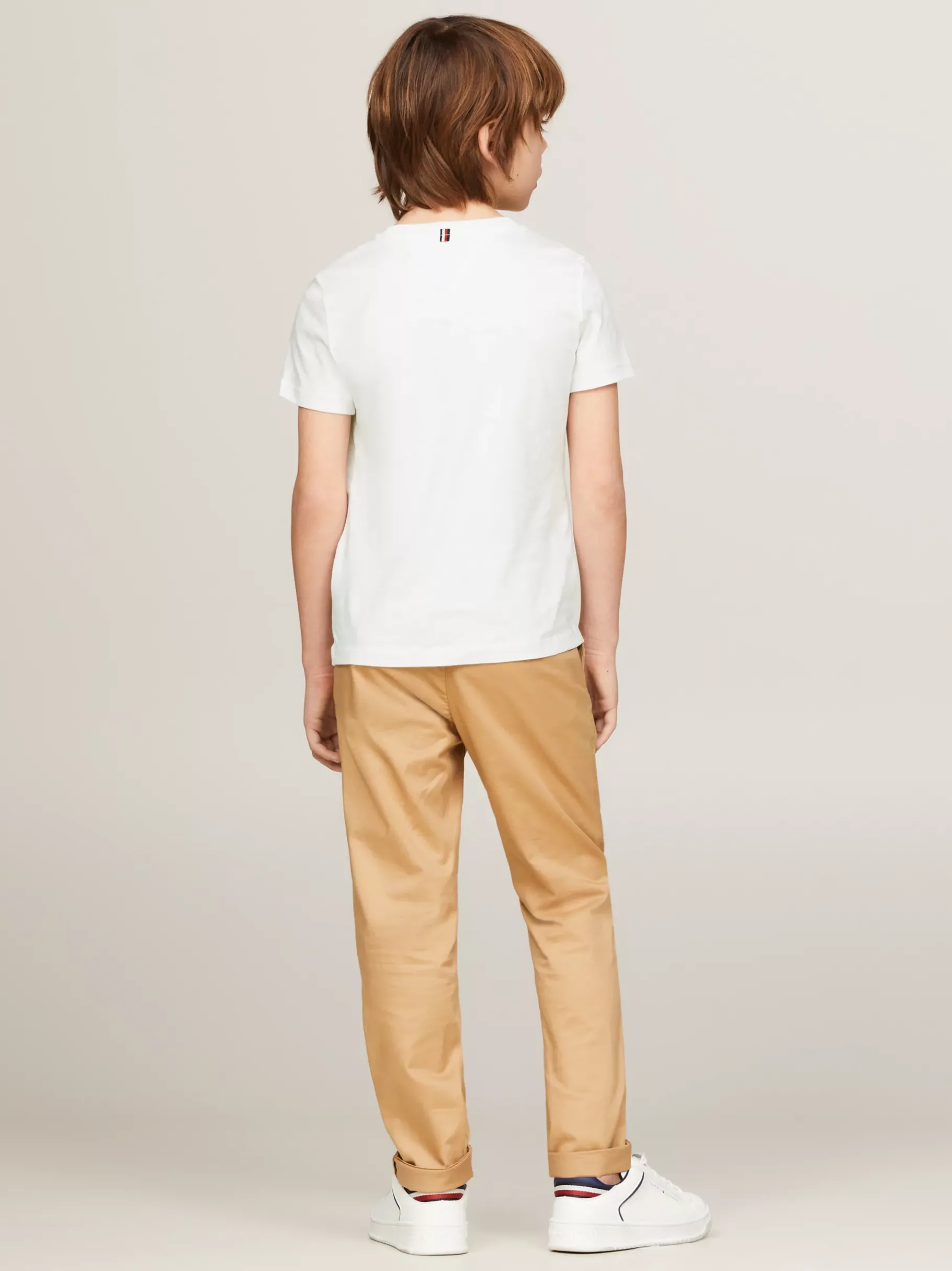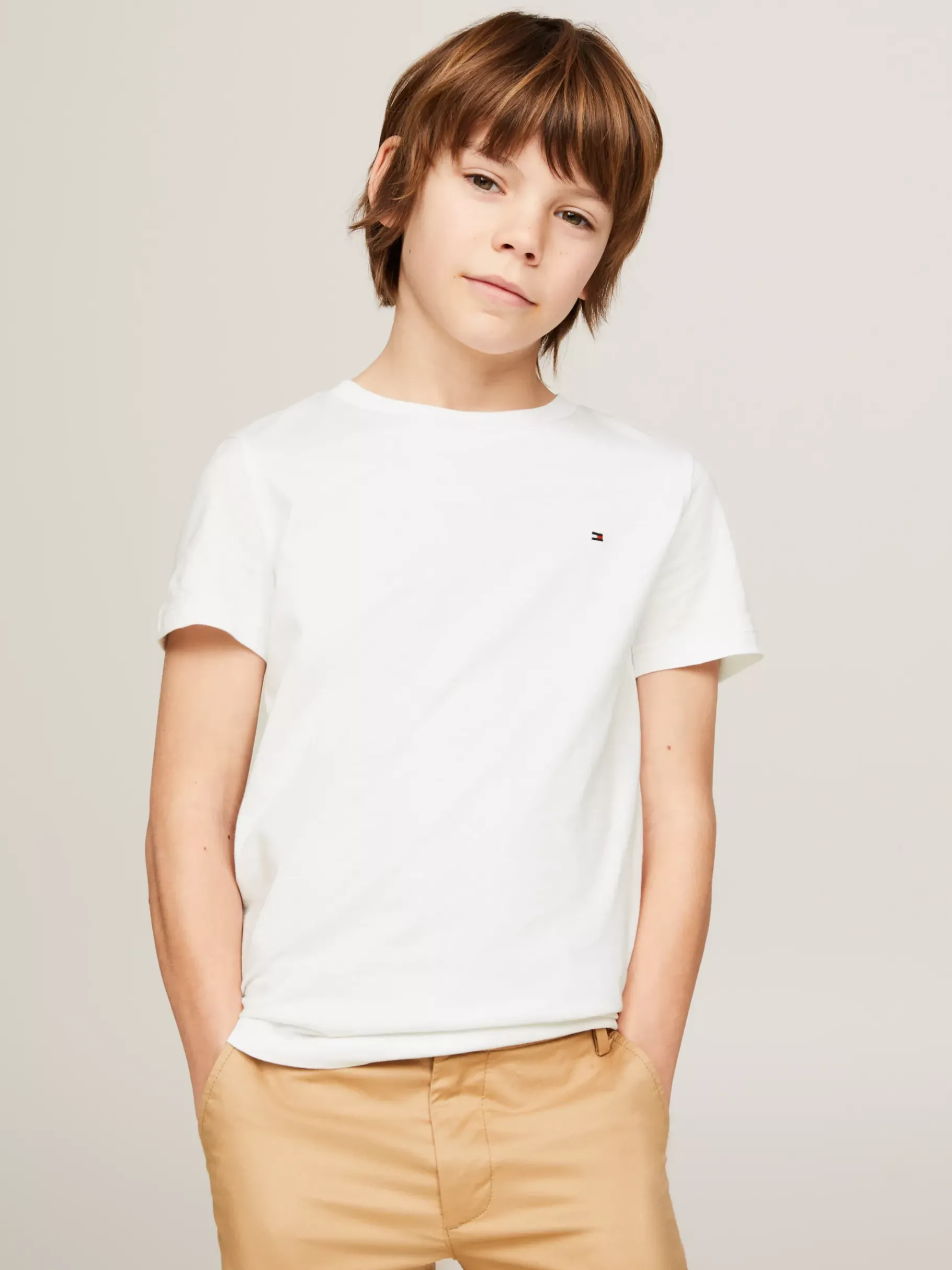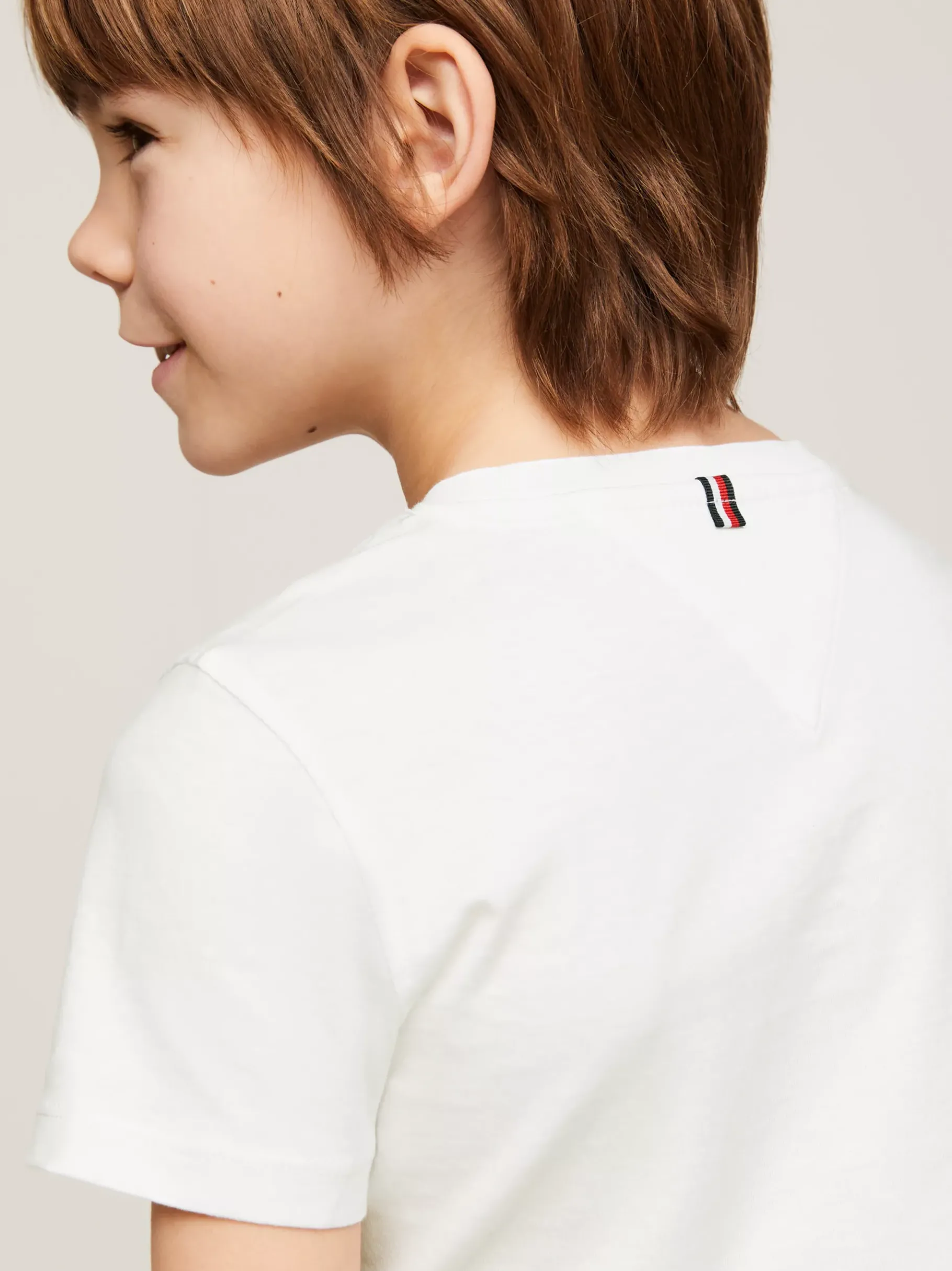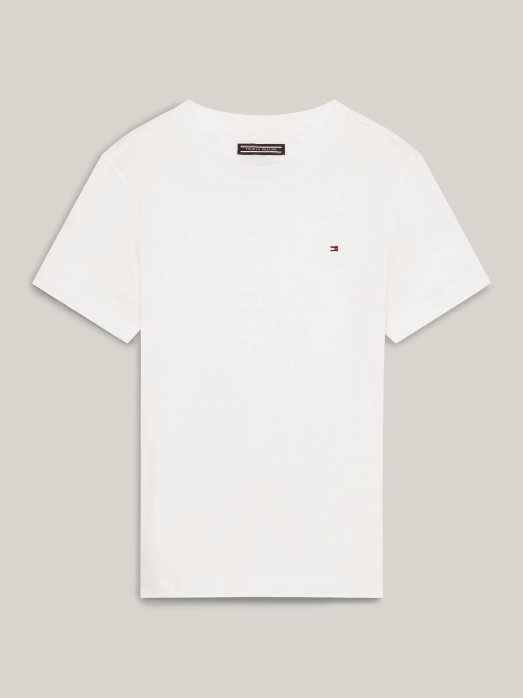 Ein T-Shirt gehört zu fast jedem Outfit und kann unter einem Hemd oder solo zur Jeans getragen werden. Dieses T-Shirt aus nachhaltiger und bequemer Bio-Baumwolle ist eine schicke Interpretation eines Alltags-Kleidungsstücks. Es hat einen Rundhalsausschnitt und auf der Brust eine dezente Tommy Hilfiger Flag.
