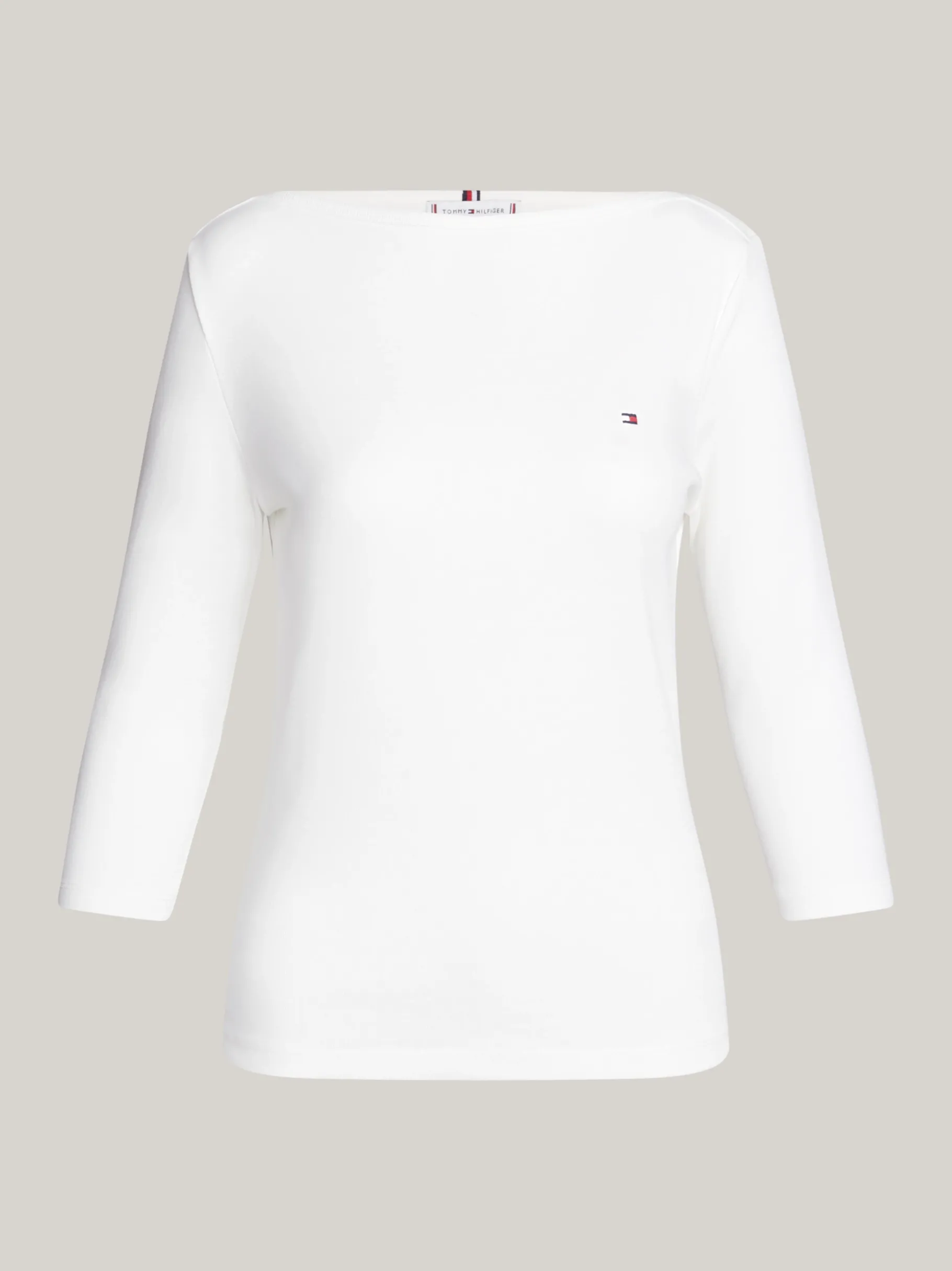 Bei diesem Slim Fit T-Shirt mit schmeichelndem U-Boot-Ausschnitt und Dreiviertel-Ärmeln trifft Eleganz auf Freizeitlook.